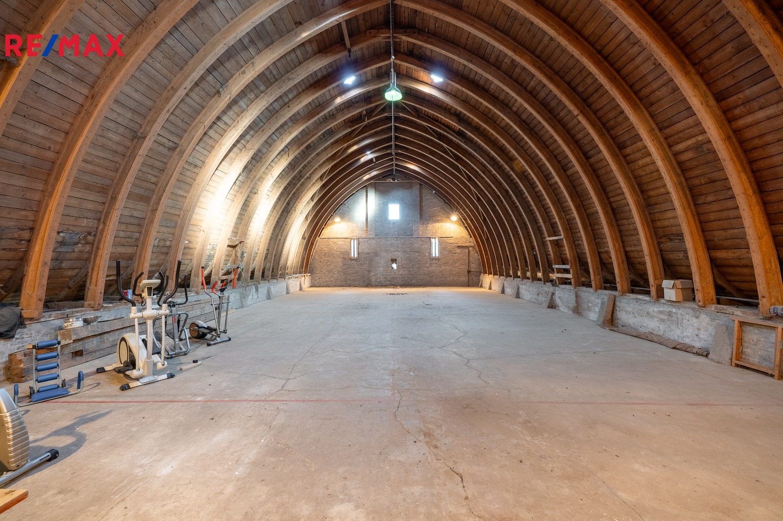 Další budova slouží jako prostorné stáje s kapacitou pro více než čtyřicet koní. Zázemí je plně funkční a uzpůsobené pro každodenní provoz s důrazem na pohodlí zvířat i efektivitu práce. U vstupu do areálu se nachází třetí objekt určený k rekonstrukci, který nabízí možnost vybudovat apartmány pro hosty či ubytování pro personál.