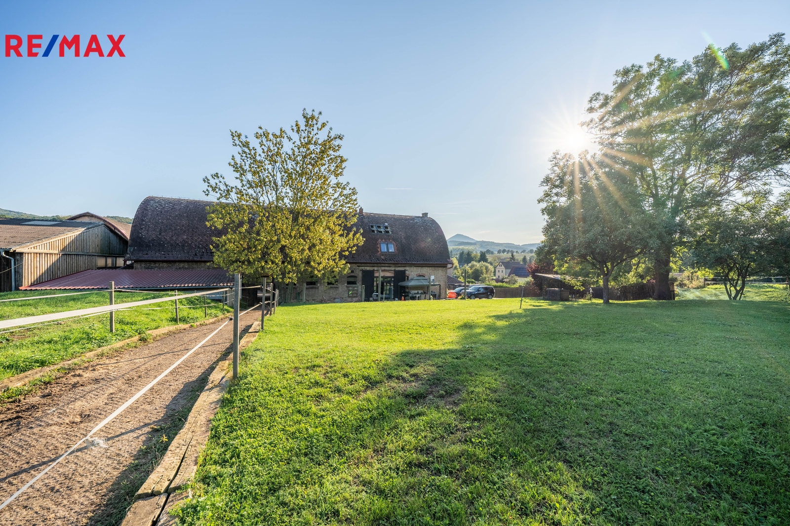 V malebném prostředí Českého středohoří, obklopený klidem, zelení a širokými výhledy do krajiny, se nachází jedinečný statek na pozemku o rozloze 8 338 m² s krytou jízdárnou a kompletním zázemím pro chov a ustájení více než čtyřiceti koní.