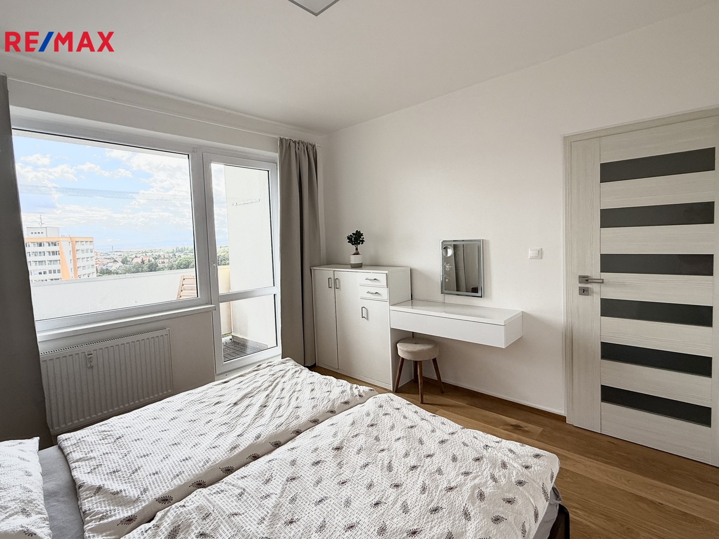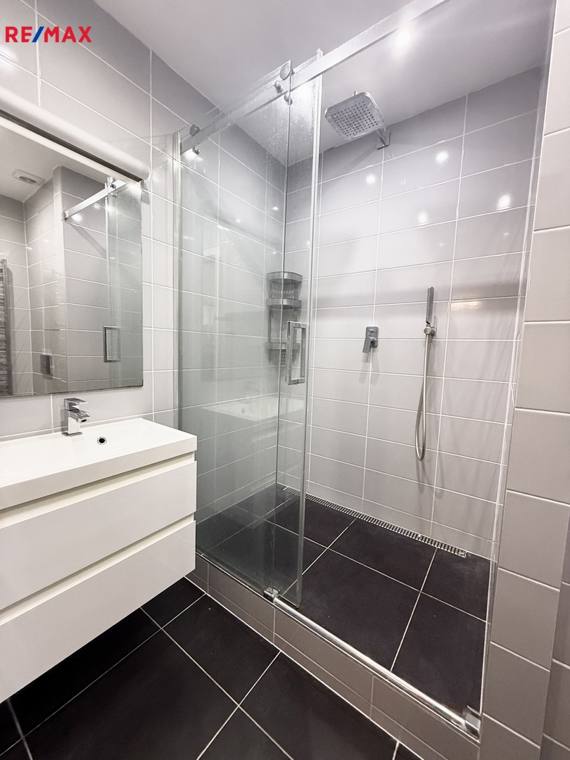 Byt se pronajímá vybavený dle domluvy. Skládá se z prostorné chodby s vestavěnou skříní se vstupem do dvou samostatných pokojů, kde se nachází dubové dřevěné podlahy. Dále pak plně vybavenou kuchyní se rozšířeným vstupem do obývacího pokoje s jídelním stolem. Zděná koupelna má prostorný sprchový kout.