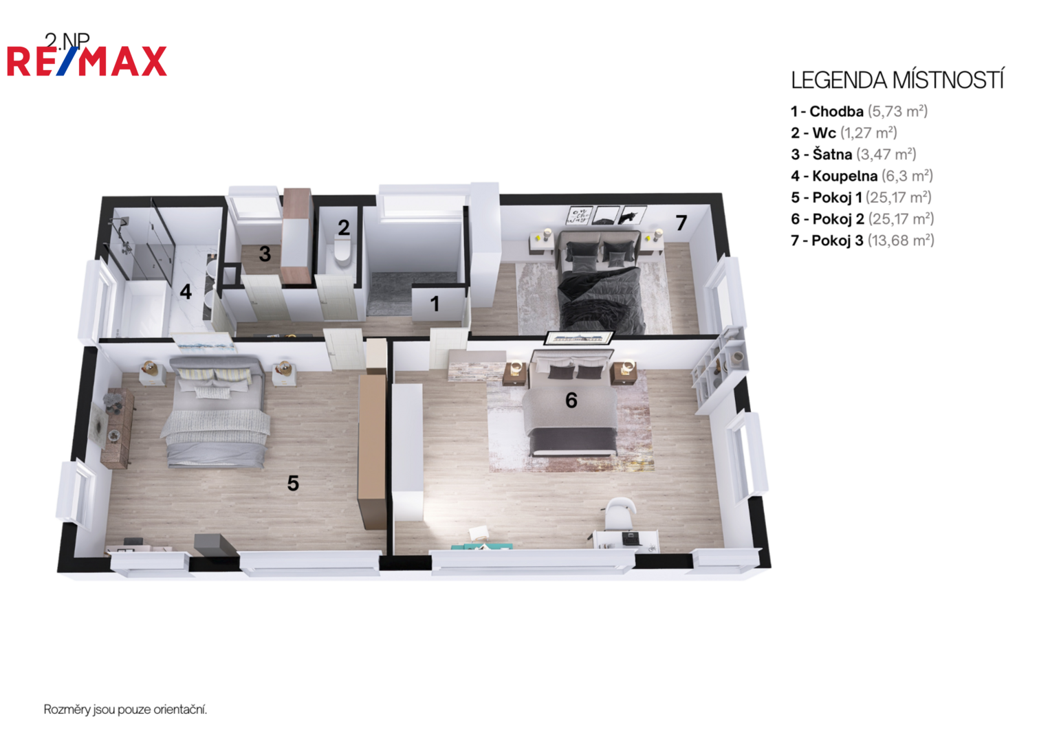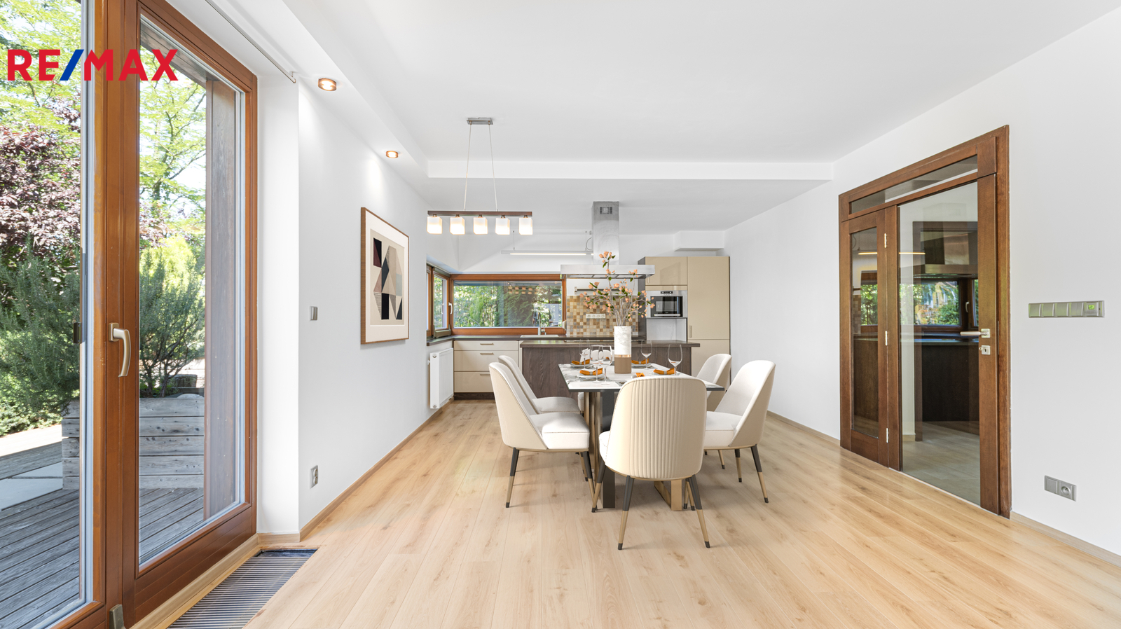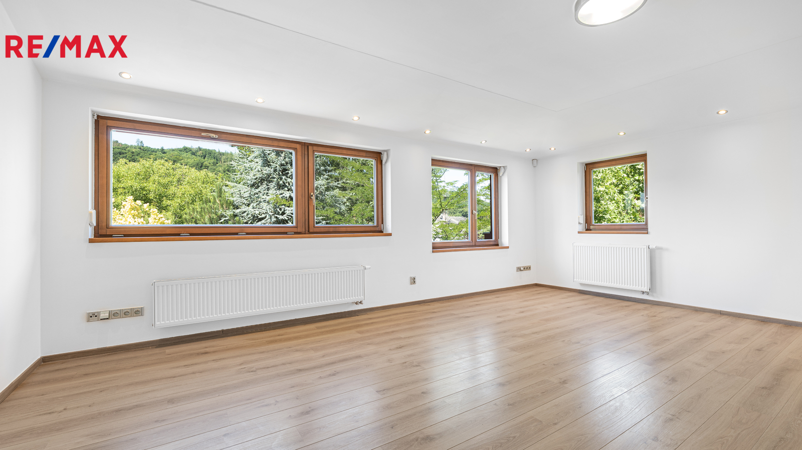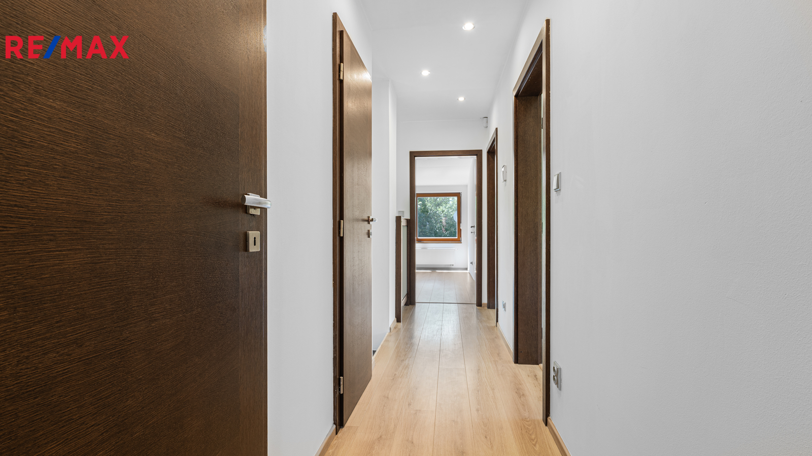 - dvě prostorné ložnice s výhledem do zahrady (možnost propojení na master suite)