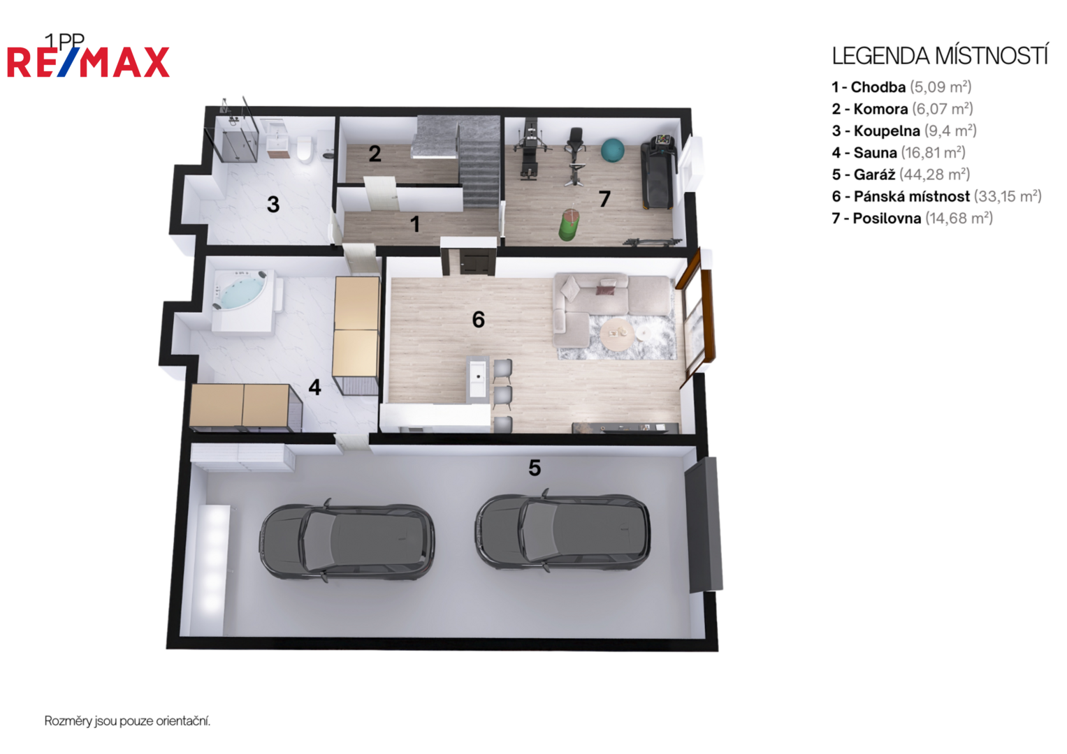 - Možnost wellness / fitness / domácí kino v dolním podlaží