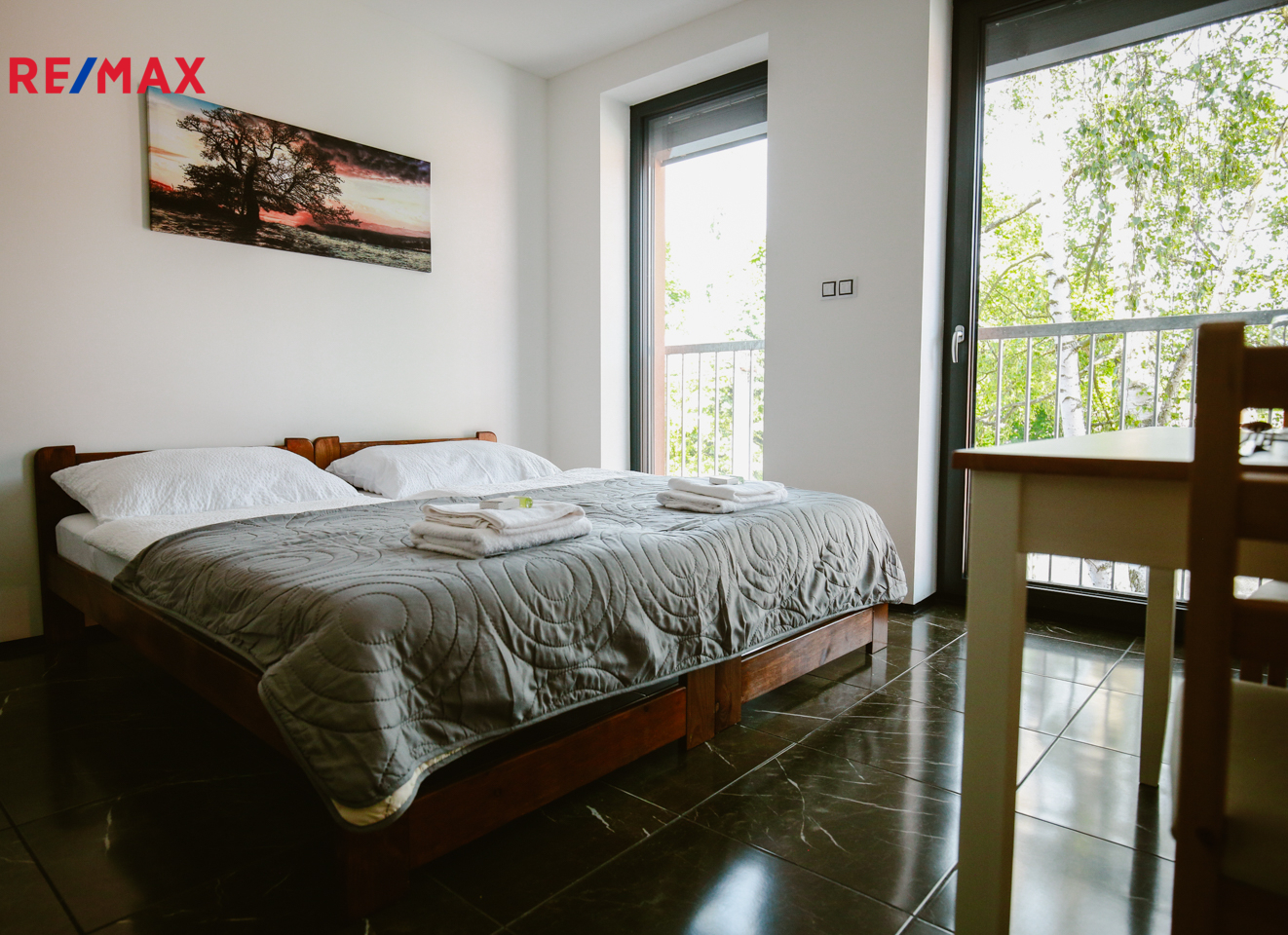 Součástí pronájmu je kompletní vybavení: TV, skříň, stůl, 2x postel, věšák, menší lednička, kávovar, mikrovlná trouba, indukční deska a nádobí.