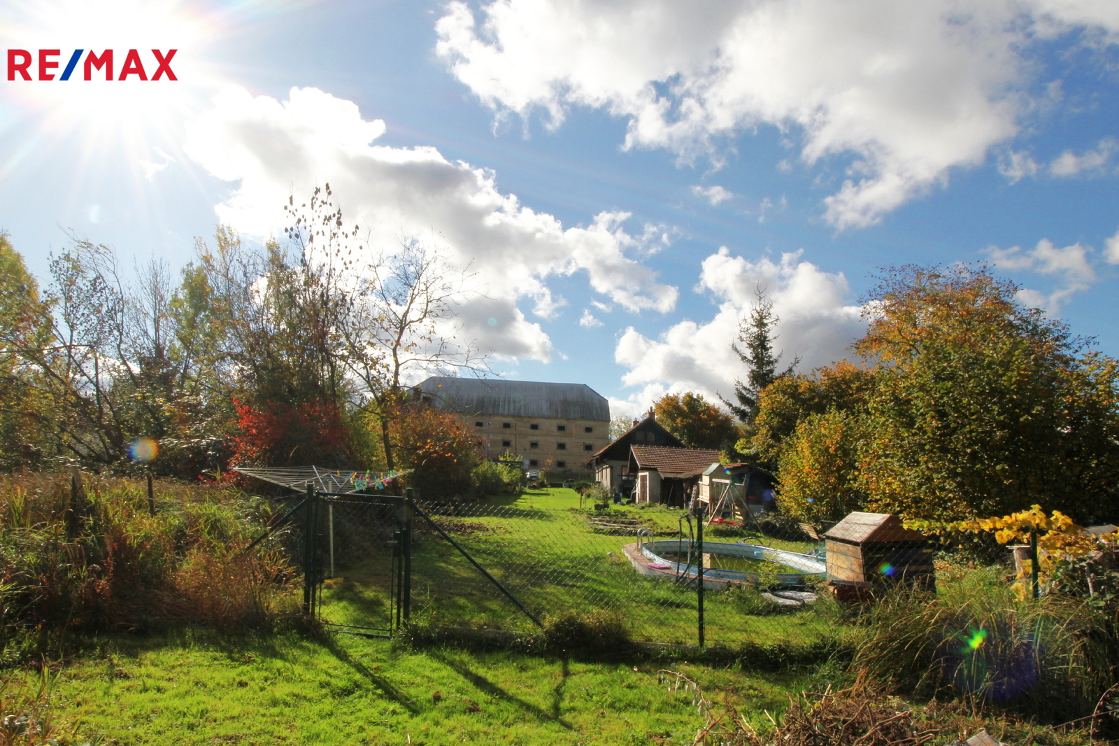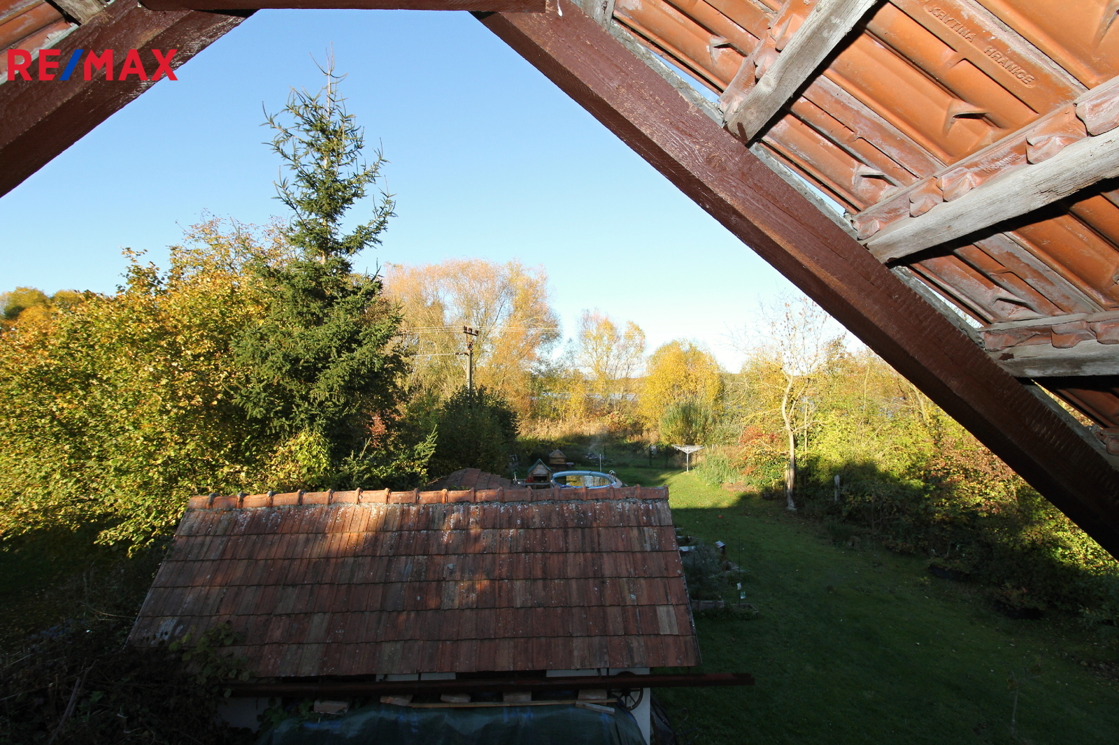 Exteriér nemovitosti nabízí široké možnosti pro relaxaci a zábavu. Na pozemku se nachází garáž, dětský domeček se skluzavkou a houpačkou, pergola a zapuštěný bazén o rozloze 14 m², ideální pro osvěžení během letních měsíců. Pro pitnou vodu je k dispozici kopaná studna. Odpad je sveden do septiku.