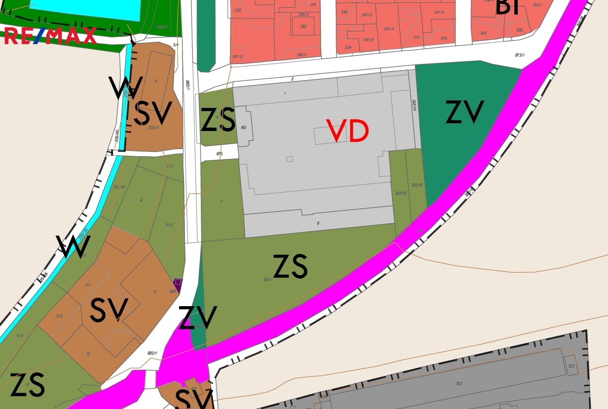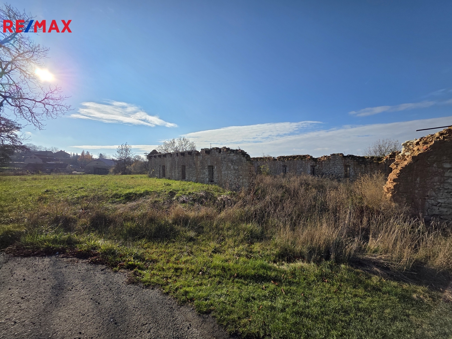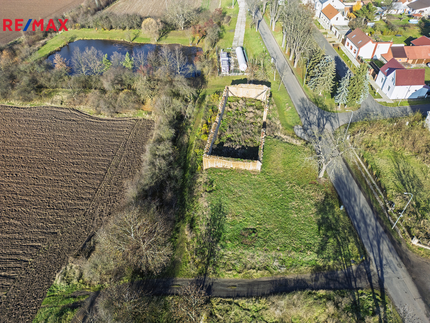 - Přístup je zajištěn přes místní komunikace. Prodávající má podané žádosti o schválení terénních úprav a probíhá proces vyjmutí pozemků ze ZPF.