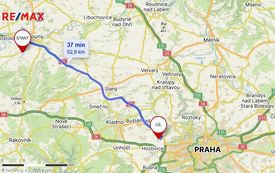 - Nájezd na dálnici D7 (Praha–Chomutov–Chemnitz) 5 minut jízdy
