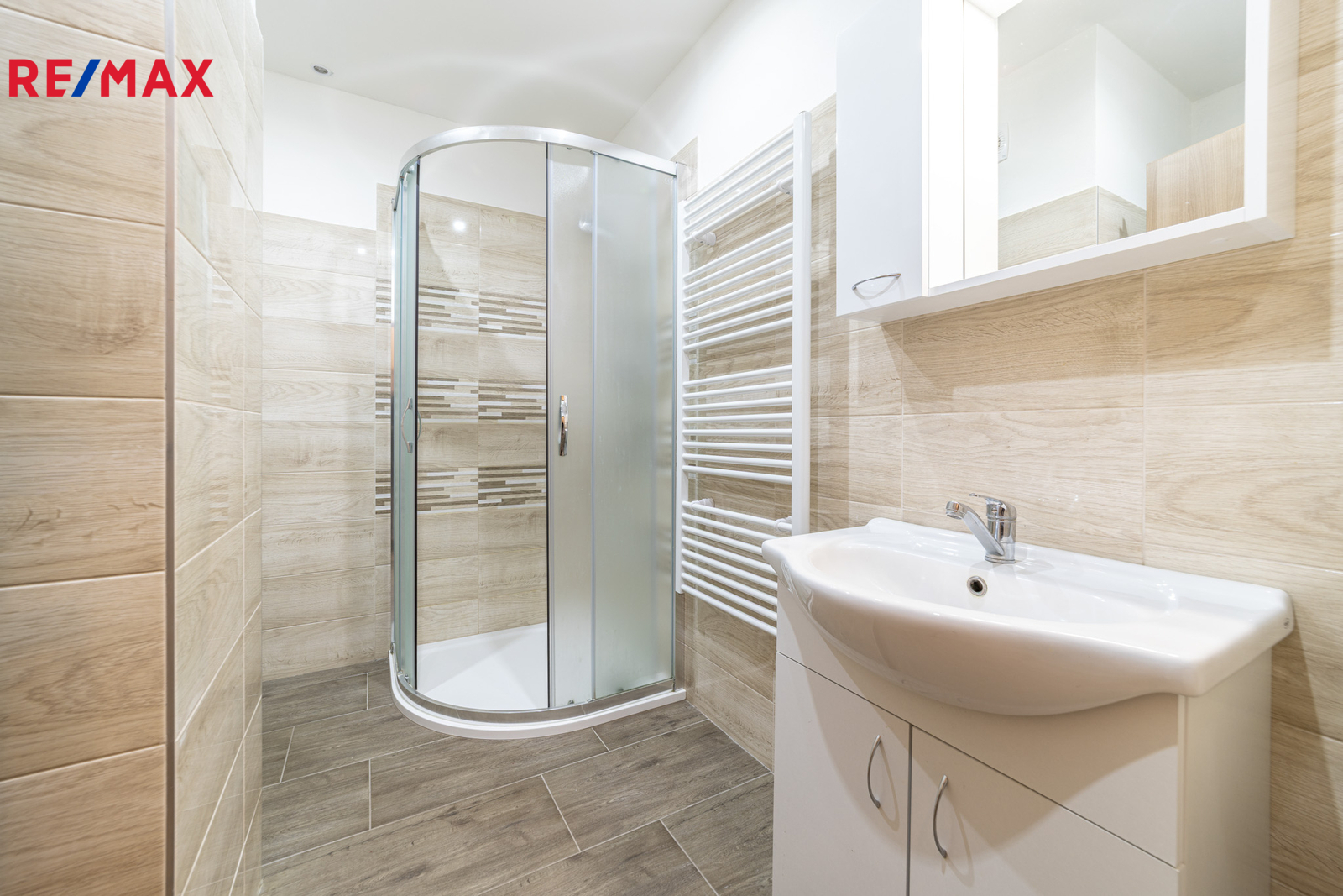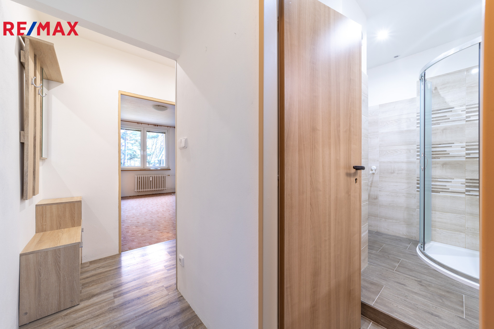 Byt má 35,70 m², k tomu sklepní box 2,20 m² a nachází se v 1. NP revitalizovaného domu. Dispozice je jednoduchá: předsíň, kuchyně, pokoj a nově zrekonstruovaná koupelna se sprchovým koutem, toaletou, umyvadlem a místem na pračku. V roce 2022 prošel byt obnovou jádra, novými rozvody elektřiny a omítkami, takže uvnitř najdete moderní a čistý prostor bez nutnosti dalších investic.
