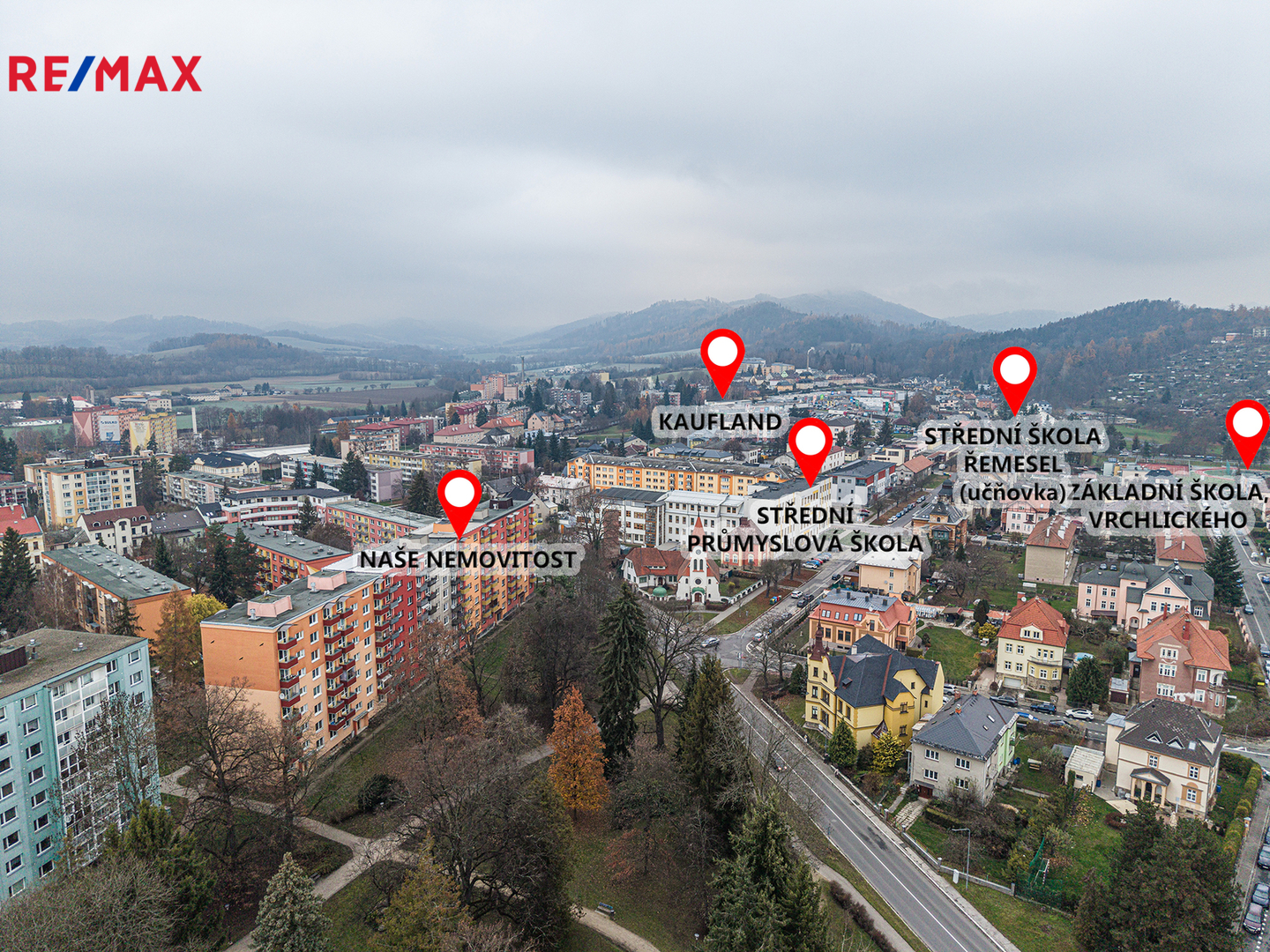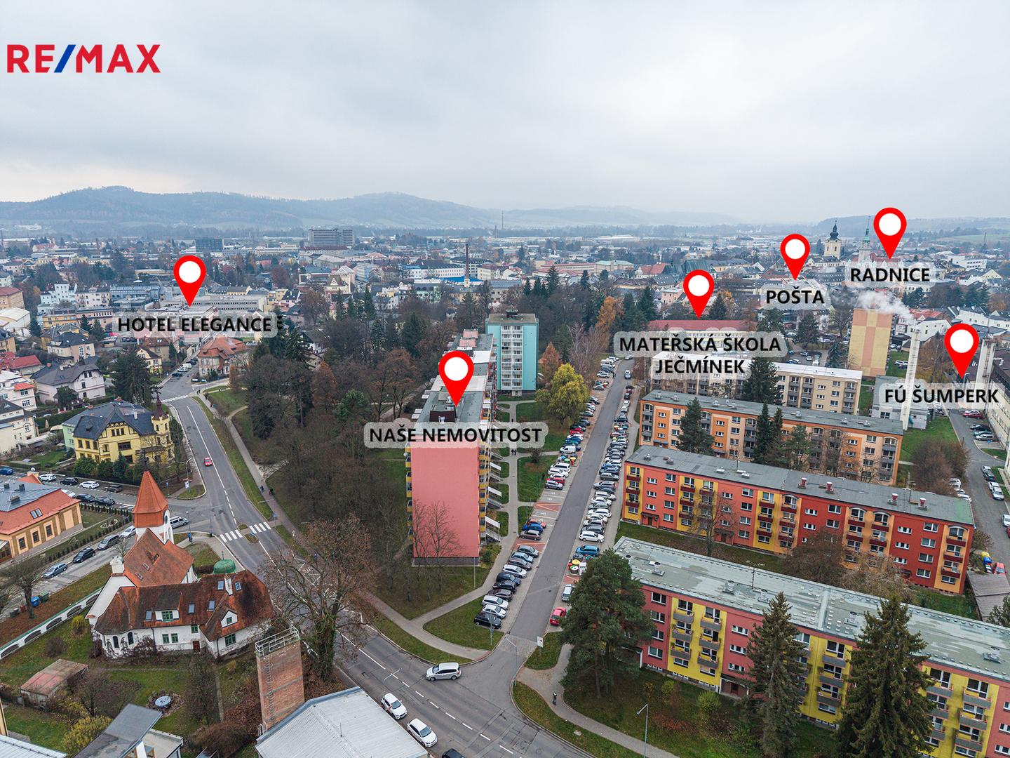 Lokalita je silná stránka této nabídky. Park máte za okny, okolí je klidné a do centra Šumperka to máte pár minut pěšky. Obchody, služby, zastávky i lékaři — všechno doslova po ruce. Díky tomu je byt skvělou volbou jak pro vlastní bydlení, tak jako investice s rychlou a jistou obsaditelností.