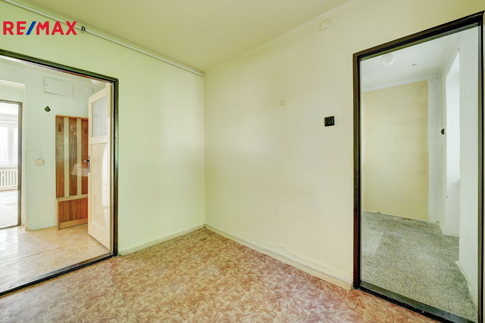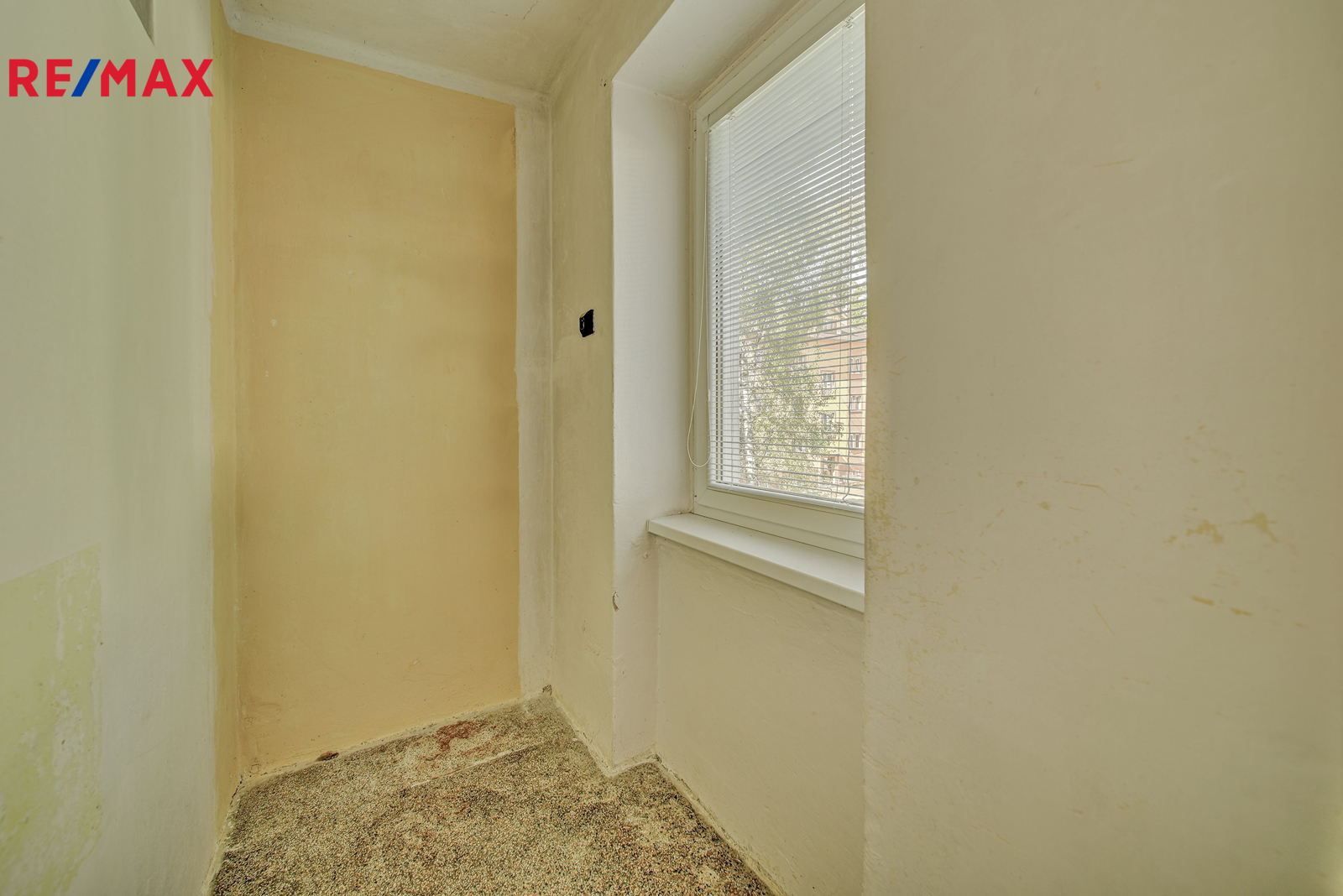 Nabízíme k prodeji hezký byt před rekonstrukcí s dispozicí 2+1 o výměře 58 m2 v ulici Mikoláše Alše v Kolíně. Předsíní vstoupíme do bytu.