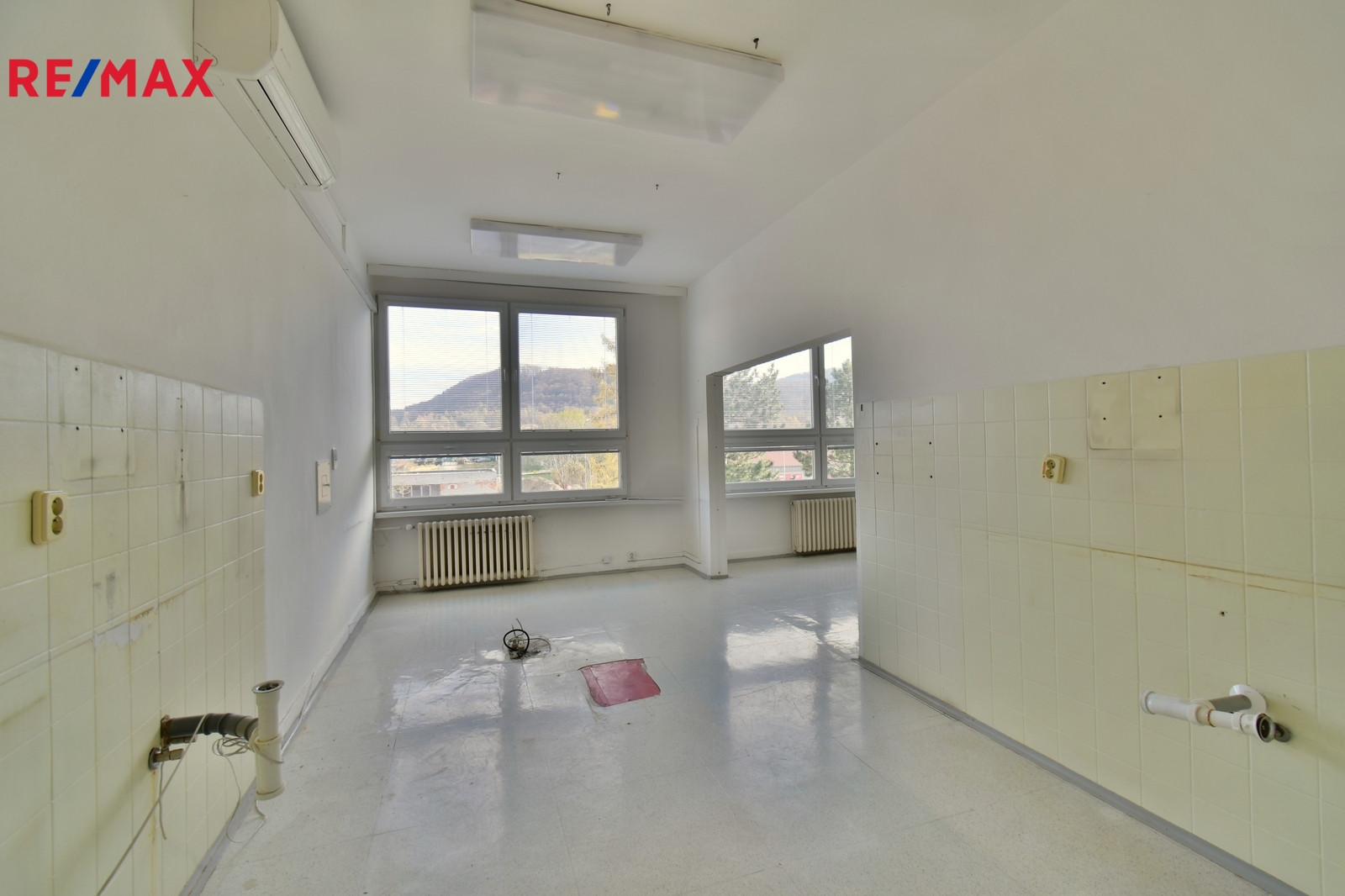 K dispozici je několik samostatných prostor různých velikosti – od 23 až 50 m² – které lze vybrat dle potřeby. Fotografie ukazují aktuální stavy prostor a místností. Jedná se o světlé místnosti s velkými okny. Ordinace s přípravou pro umyvadla, vodu a odpad.