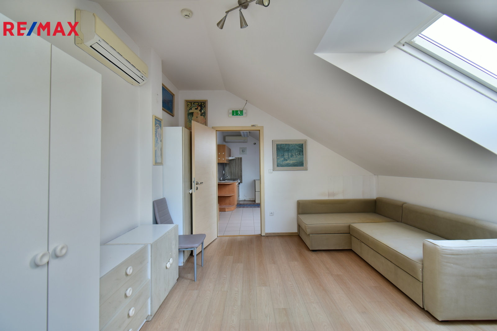 Kancelář vhodná pro administrativu, logopedii, psychologii nebo menší poradnu a prostor využitelný jako ateliér / pracovnu.