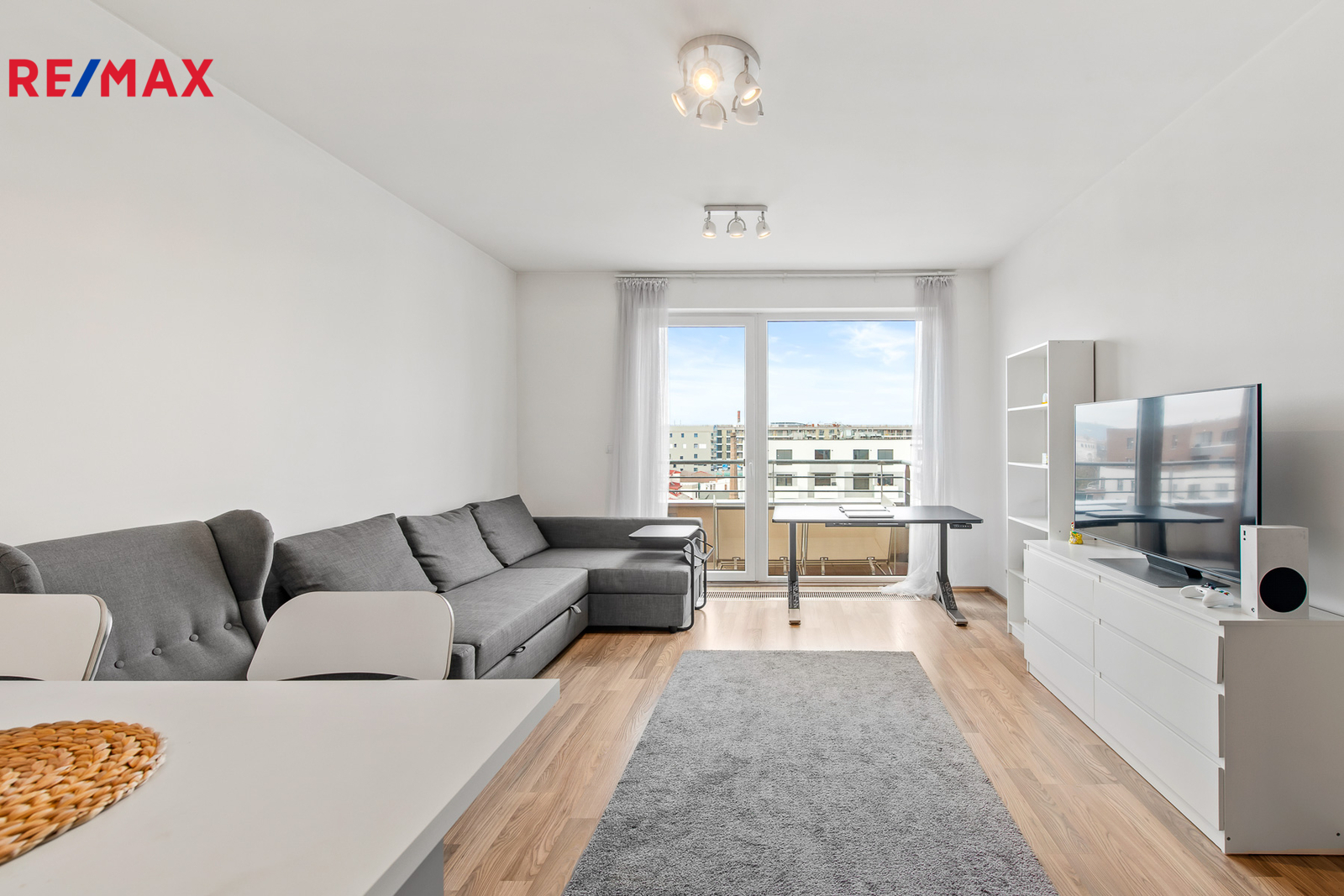 Byt se skládá z prostorného obývacího pokoje s kuchyňským koutem, ložnice, koupelny, samostatného WC a předsíně. K bytu náleží balkon o velikosti 4,4 m² a sklepní kóje 2,4 m². V ceně je zahrnuto parkovací místo v podzemní garáži, což představuje výraznou přidanou hodnotu v této lokalitě.