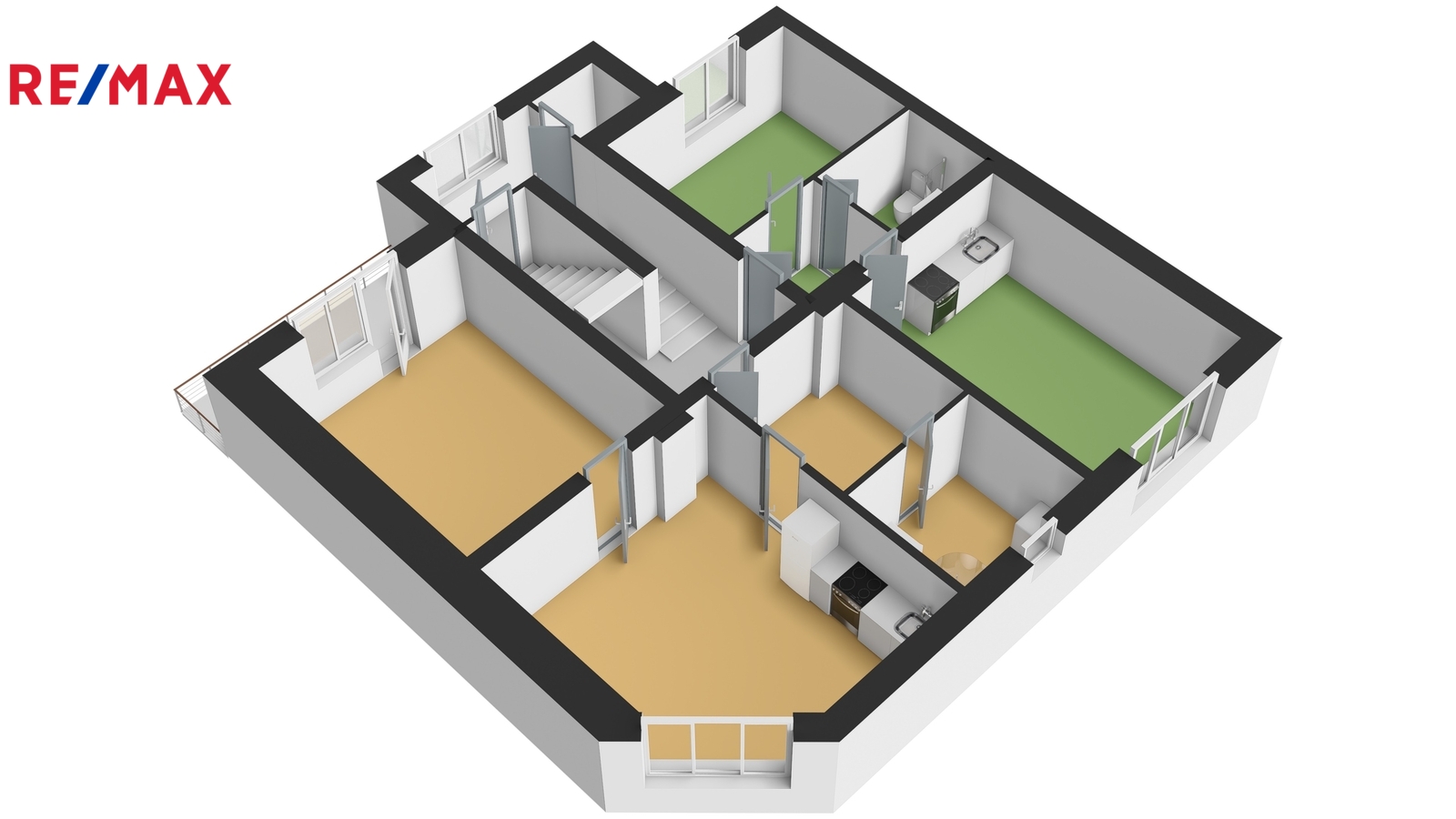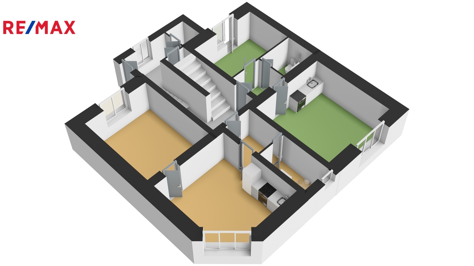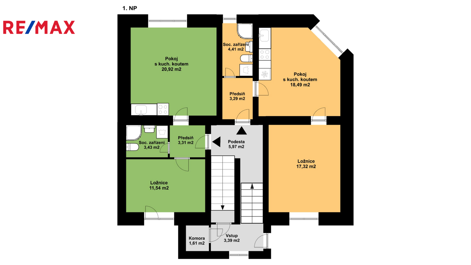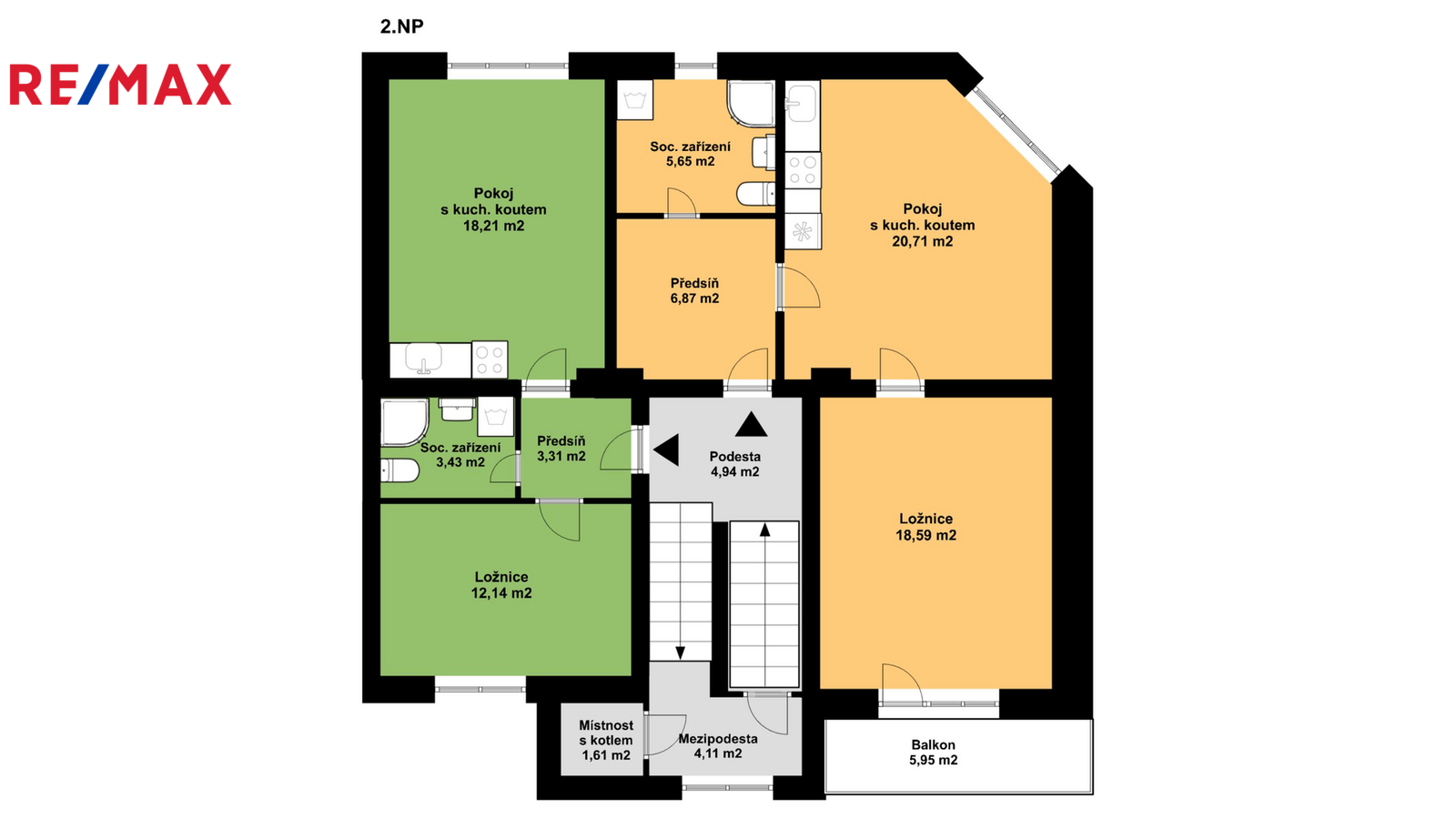 • Technické místnosti v mezipatrech – kočárkárna, komora, kotelna.