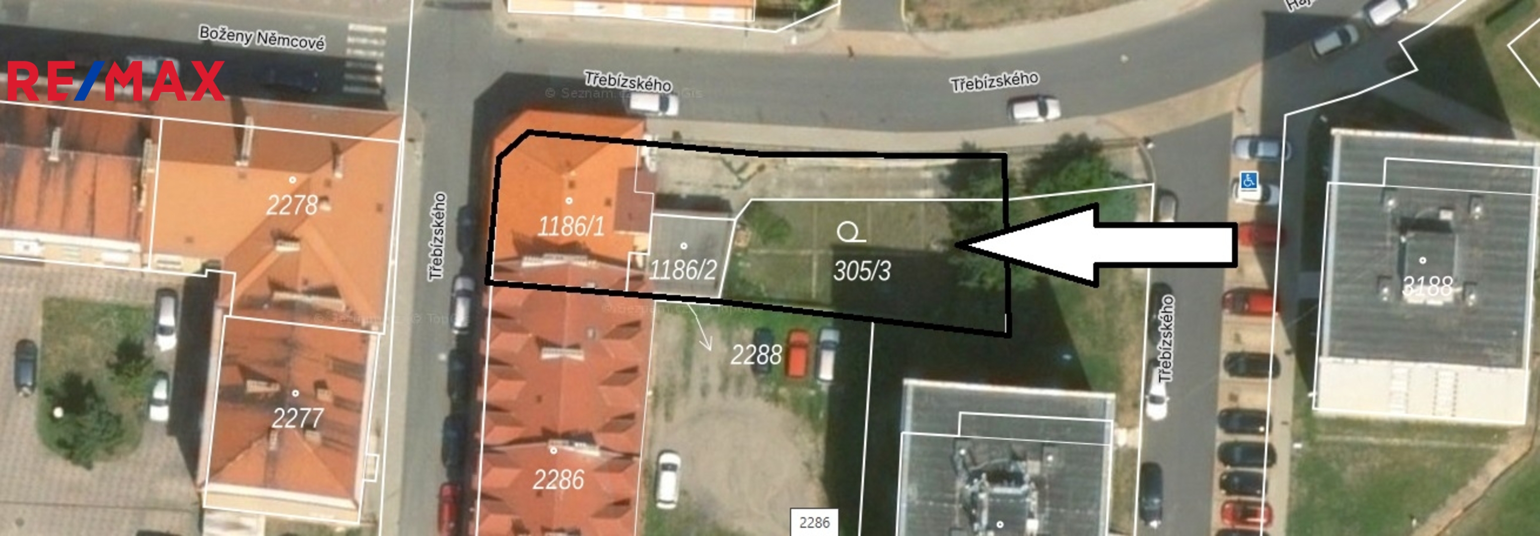 K domu náleží menší pozemek o výměře cca 300 m² – zahrada a zpevněná přístupová cesta ke garážím.