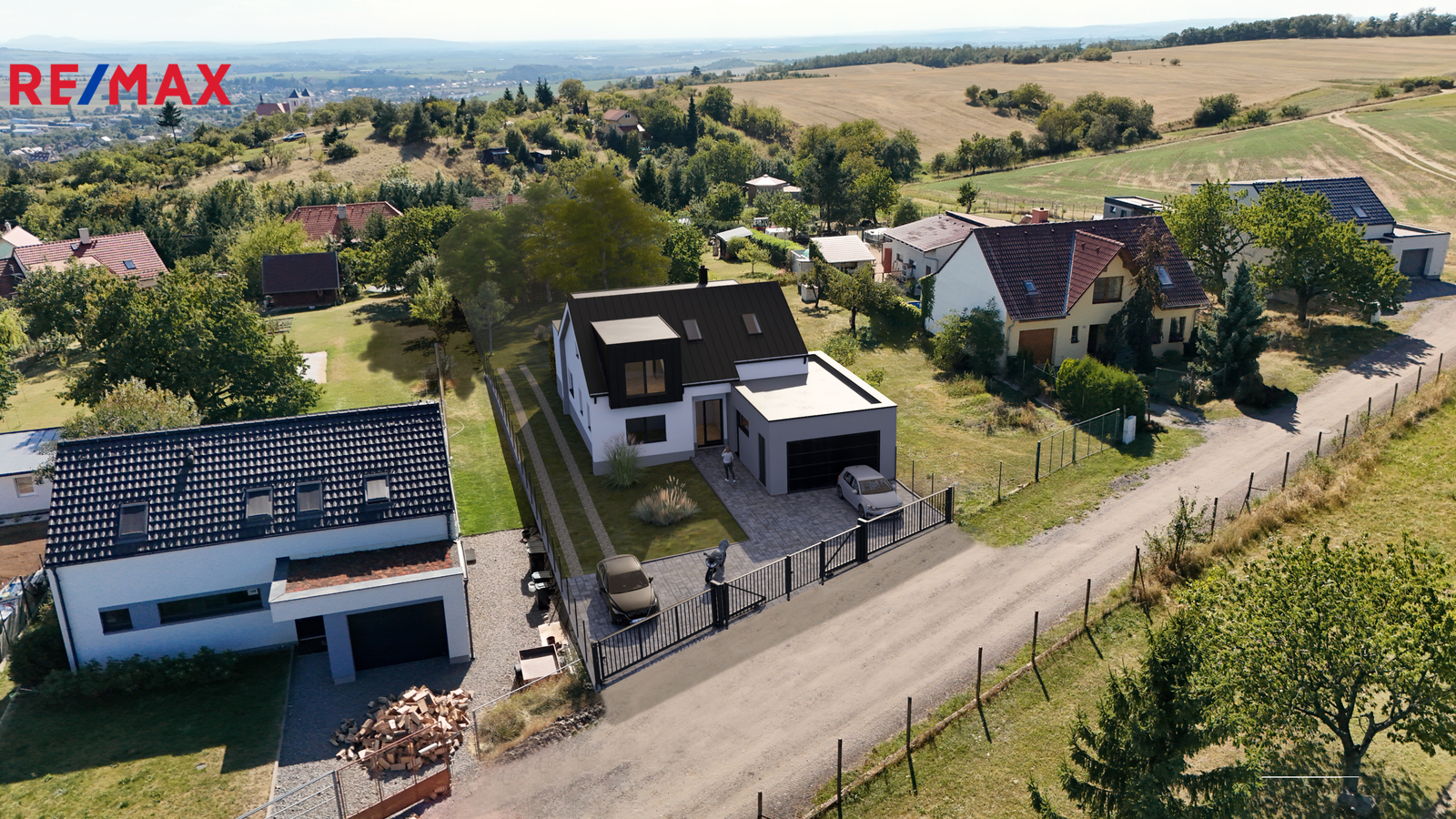 Pozemek je rovinatý, s jižní orientací, celodenně osluněný, v nejvyšších polohách obce s dalekým výhledem. Přístup na pozemek je z přilehlé obecní komunikace, ve které jsou uloženy inženýrské sítě. Pozemek má vydané platné stavební povolení na stavbu moderního, rodinného domu o dispozici 6 + kk, s garáží o celkové užitné ploše přibližně 255 m2, z toho obytná přibližně 180 m2.