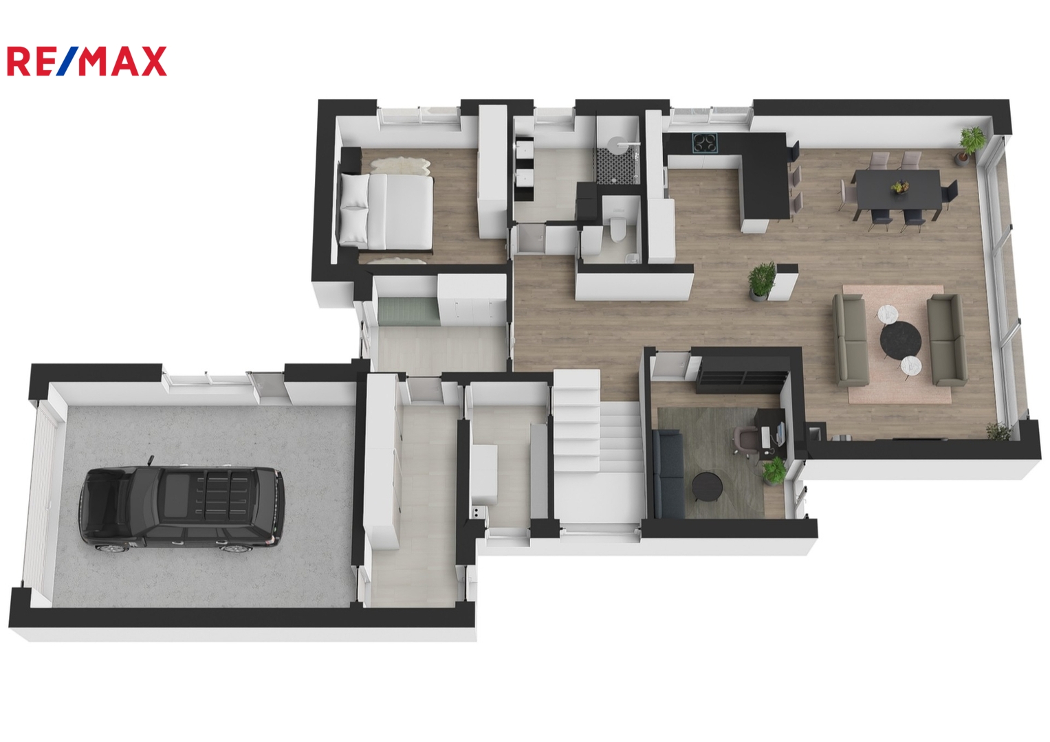 Uvedená cena zahrnuje hrubou stavbu rodinného domu ( zastřešení, vodorovné, svislé konstrukce, izolace, klempířské a zámečnické konstrukce), jejíž realizace proběhne během ½ roku, od podpisu příslušné smlouvy. Finální řešení domu je viditelné na ilustrativních snímcích a v přípaě zájmu lze dům dokončit do této podoby.