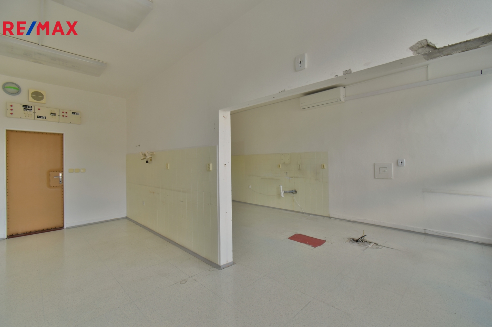 K dispozici je několik samostatných prostor různých velikosti – od 23 až 50 m² – které lze vybrat dle potřeby. Fotografie ukazují aktuální stavy prostor a místností. Jedná se o světlé místnosti s velkými okny. Ordinace s přípravou pro umyvadla, vodu a odpad.