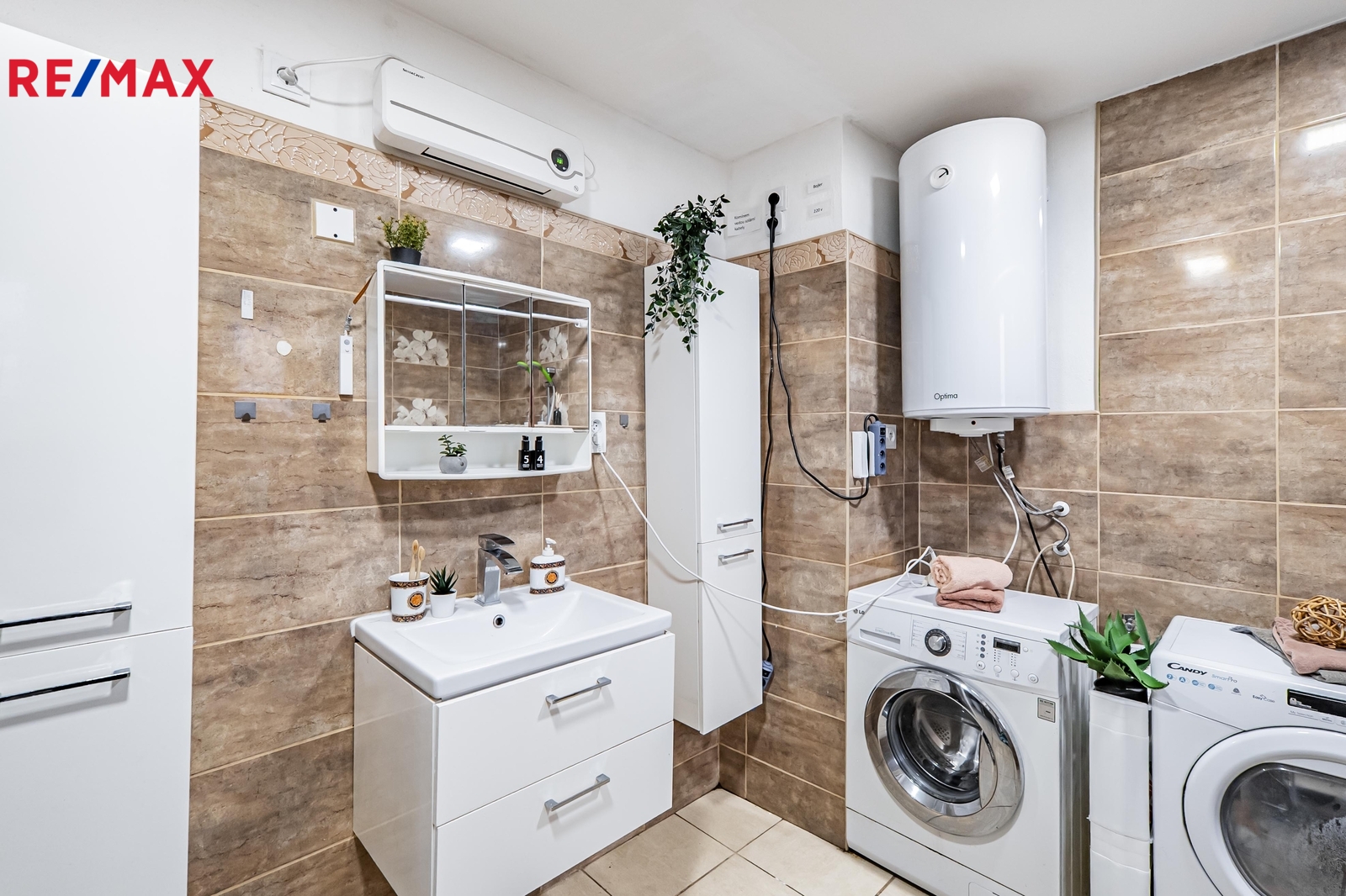 Dům je vybaven plynovým kotlem, kotlem na tuhá paliva, radiátory a solárními panely pro ohřev vody. Je celý podsklepený a součástí je garáž, dílna a technická místnost. V patře se nachází lodžie, dvě koupelny, čtyři ložnice a samostatná kuchyň.