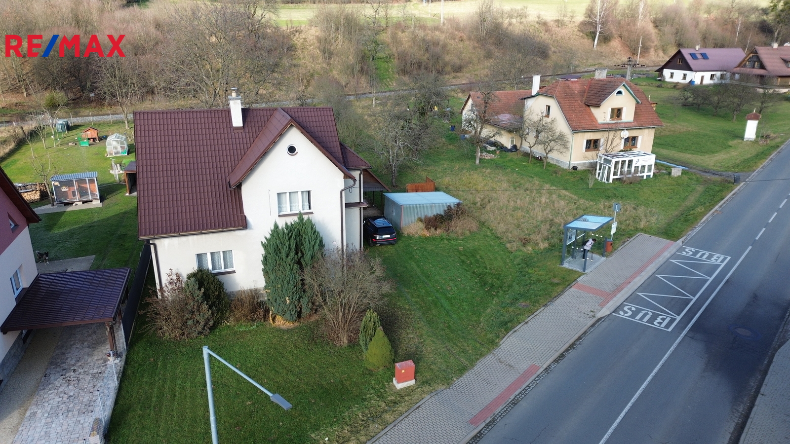 Dům o zastavěné ploše 100 m² je dvoupodlažní a stojí na krásném, slunném a prostorném pozemku o celkové výměře 2 548 m².