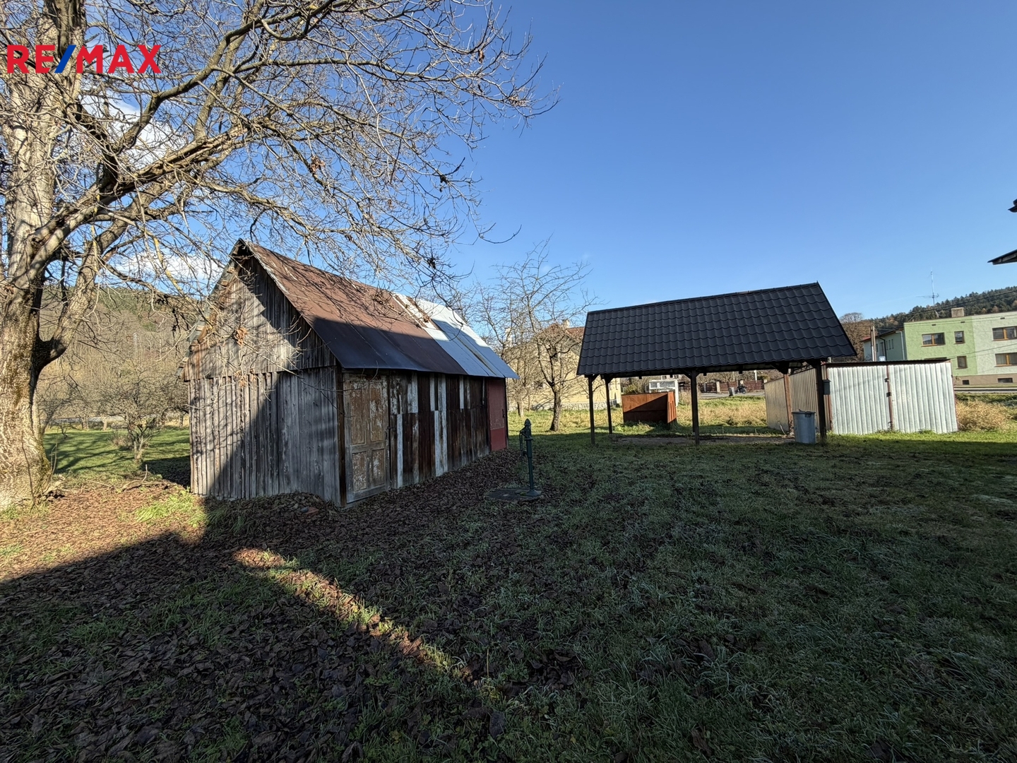 Na pozemku můžete využít kryté parkovací stání a hospodářskou stavbu.