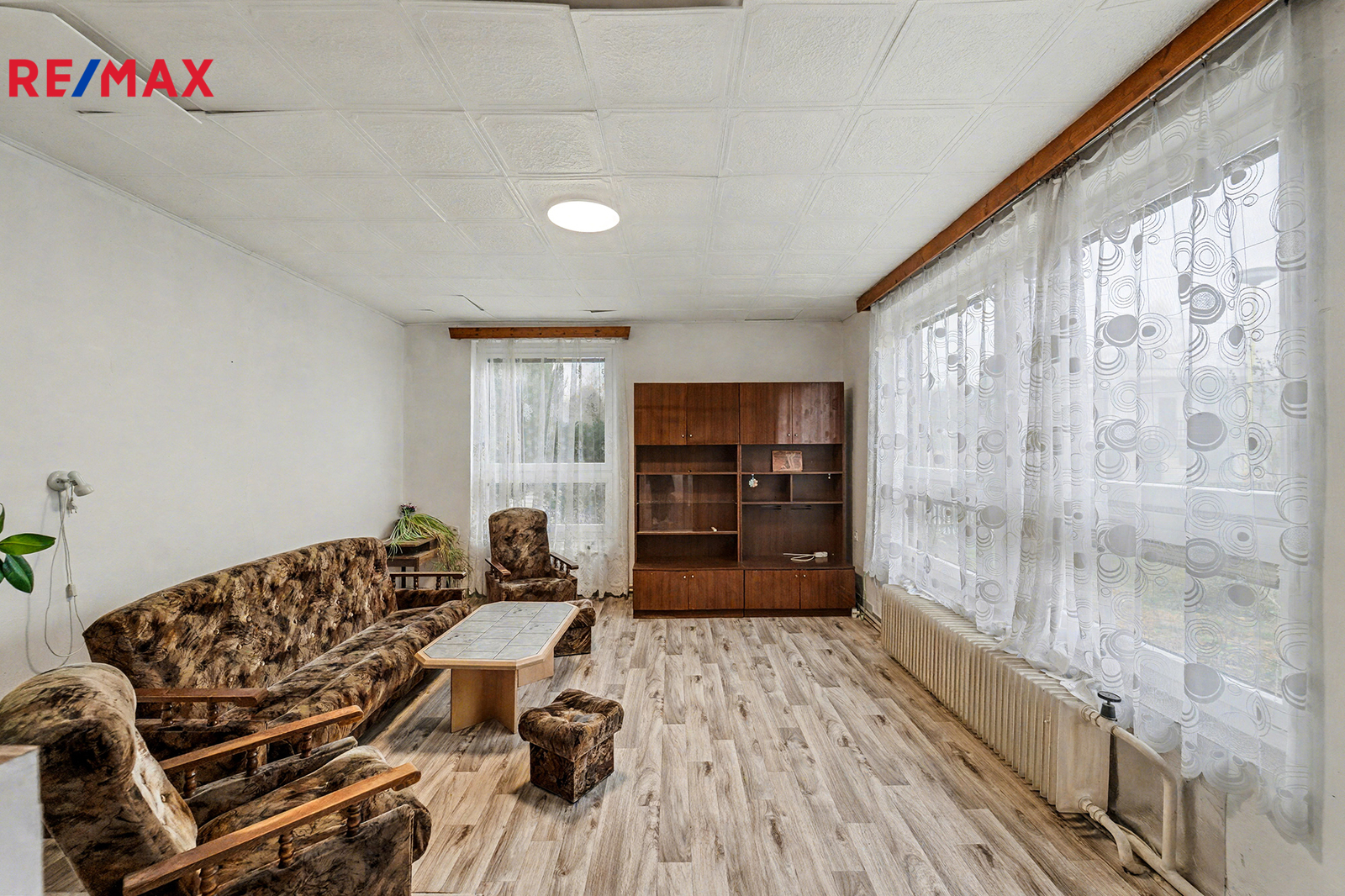 Nabízíme Vám ke koupi rodinný dům v těsné blízkosti hory Říp o celkové užitné ploše cca 132 m2 + garáž a suterén. Dům kolaudovaný v roce 1990 je obyvatelný, ale je určený k celkové rekonstrukci. Má potenciál k rozšíření o další obytné patro jako okolní rodinné domy. Velkou výhodou je také, že skoro celý dům je podsklepen. Dům disponuje taky garáží do které je přístup ze suterénu. Minimální známky vlhkosti.