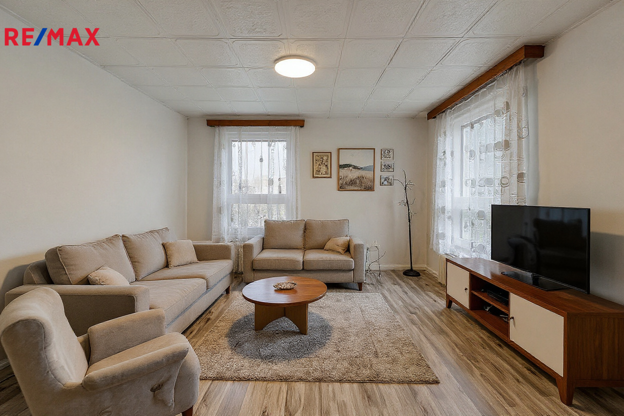 Obytné podlaží se skládá z obývacího pokoje, kuchyně, tří pokojů, koupelny, toalety a chodby. Dům má ze dvou stran balkón. Aktuálně je byt vytápěn pomocí plynového kotle s rozvodem do radiátoru, ohřev vody el. boilerem. Krb v obývacím pokoji. Dům má částečně vyměněna okna za plastová.