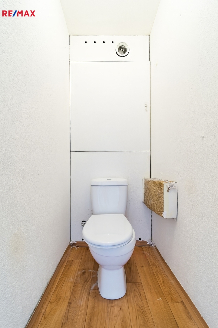 Koupelna je s vanou, WC zvlášť. Výhodou je prostorná vstupní chodba.