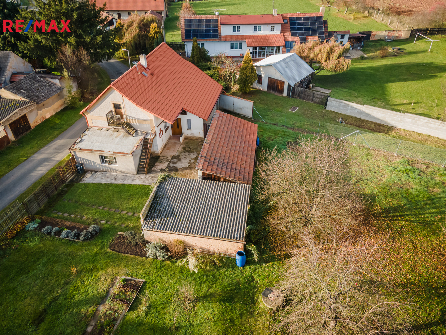 Součástí pozemku jsou dvě garáže (postavené v letech 1966 a 1977), kůlna o celkové ploše 66 m². Tyto stavby poskytují ideální prostor pro parkování, dílnu, skladování sezónního vybavení nebo zázemí pro zahradní techniku. Přístup na pozemek je bezproblémový přímo z asfaltové obecní komunikace a vjezd je řešen vlastní branou.