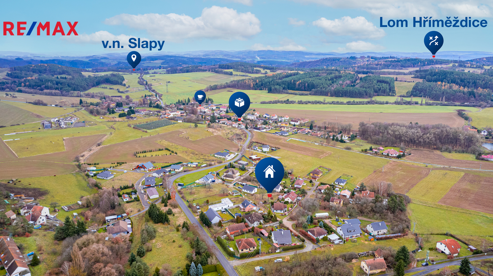 Slapská přehrada s plážemi, kempy a možností vodních sportů je přibližně 3 km od obce.