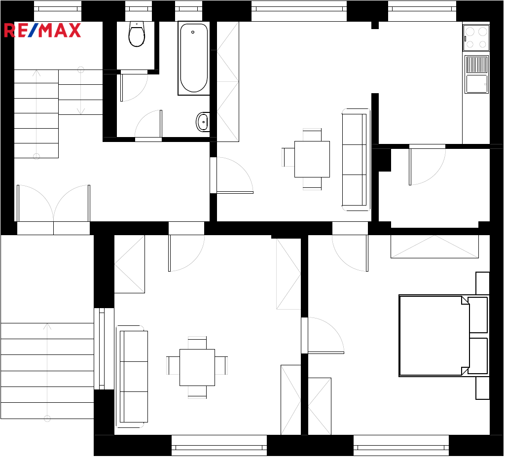 V přízemí se nachází plnohodnotná jednotka 3+1 se spíží, prostornou kuchyní, jídelnou i obývacím pokojem, dále koupelna s toaletou a další místnosti využitelné jako ložnice, pracovna či pokoj pro hosty. V patře je dispozice 2+1 s možností rozšíření o půdní vestavbu, což umožňuje vytvoření dalšího samostatného bydlení. Tento dům tak přirozeně nabízí možnost dvougeneračního využití nebo vybudování dvou plnohodnotných bytových jednotek o dispozici 3+1, které mohou fungovat zcela samostatně.