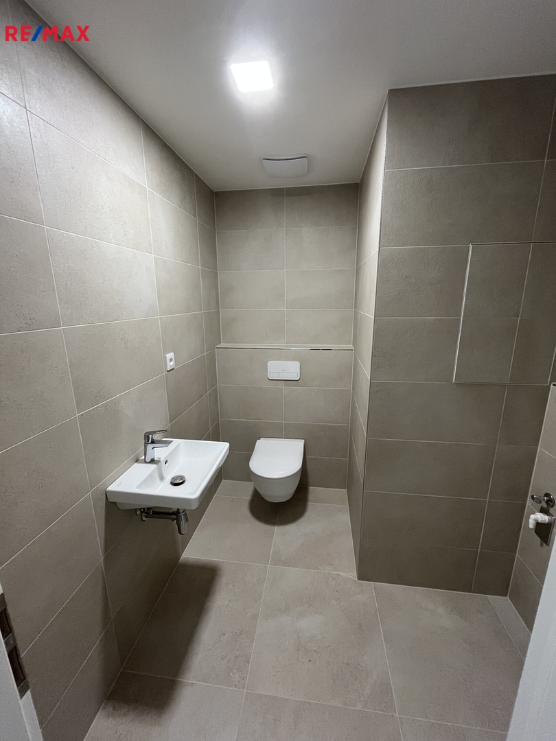 Prostorná koupelna s dvěma umyvadly a kvalitním vybavením značky Villeroy & Boj