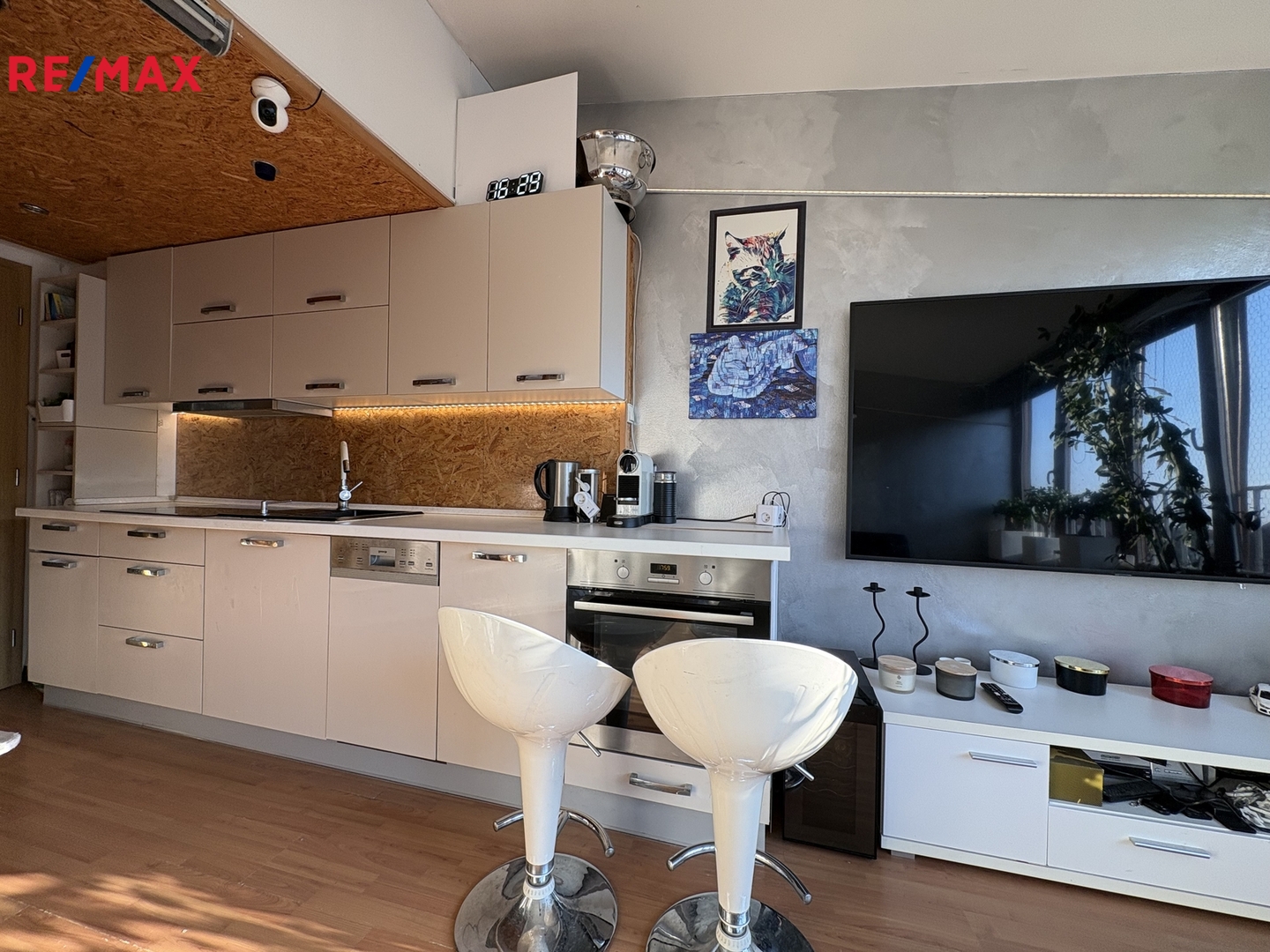 Patra jsou propojena dřevěným schodištěm. Pokoje a předsíň jsou osazeny plovoucími podlahami. V koupelně je příjemná dlažba. Ohřev vody a vytápění zajišťuje vlastní plynový kotel. V bytě jsou 2 klimatizační jednotky. Díky velkým dřevěným oknům v obývacím pokoji a střešním oknům v patře je byt příjemně světlý a prosluněný. Součástí domu je uzavřená zahrada, která je k dispozici všem vlastníkům bytů v domě.