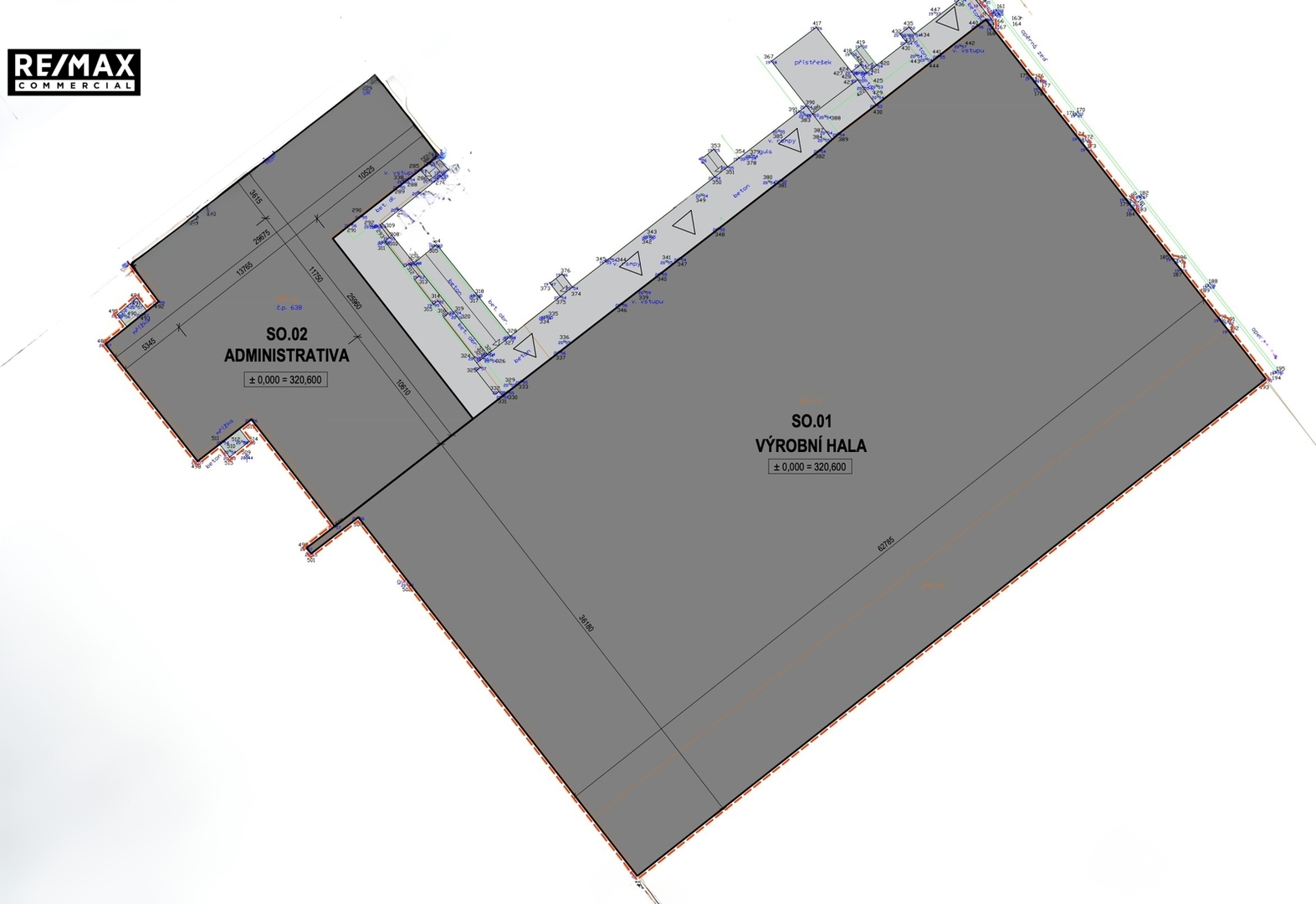 Technické informace: čtyřlodní výrobní hala obdélníkového půdorysu o rozměrech 60,0x36,5 m je tvořena jednopodlažním ocelovým skeletem, hala je postavena