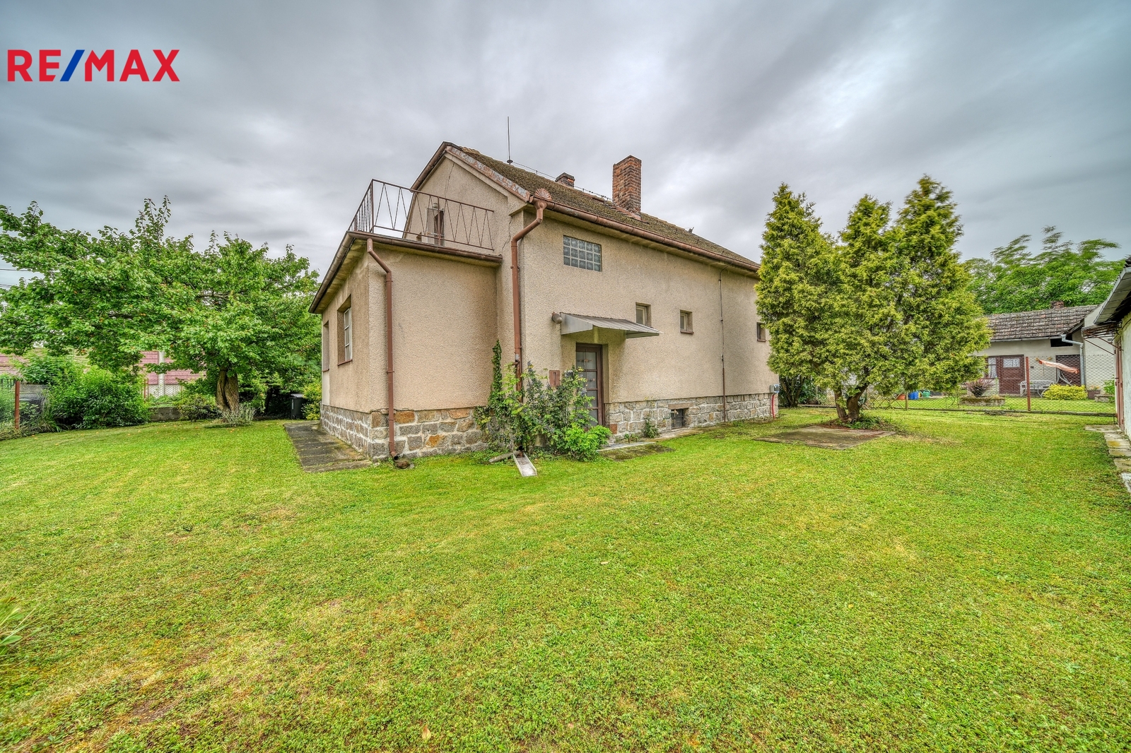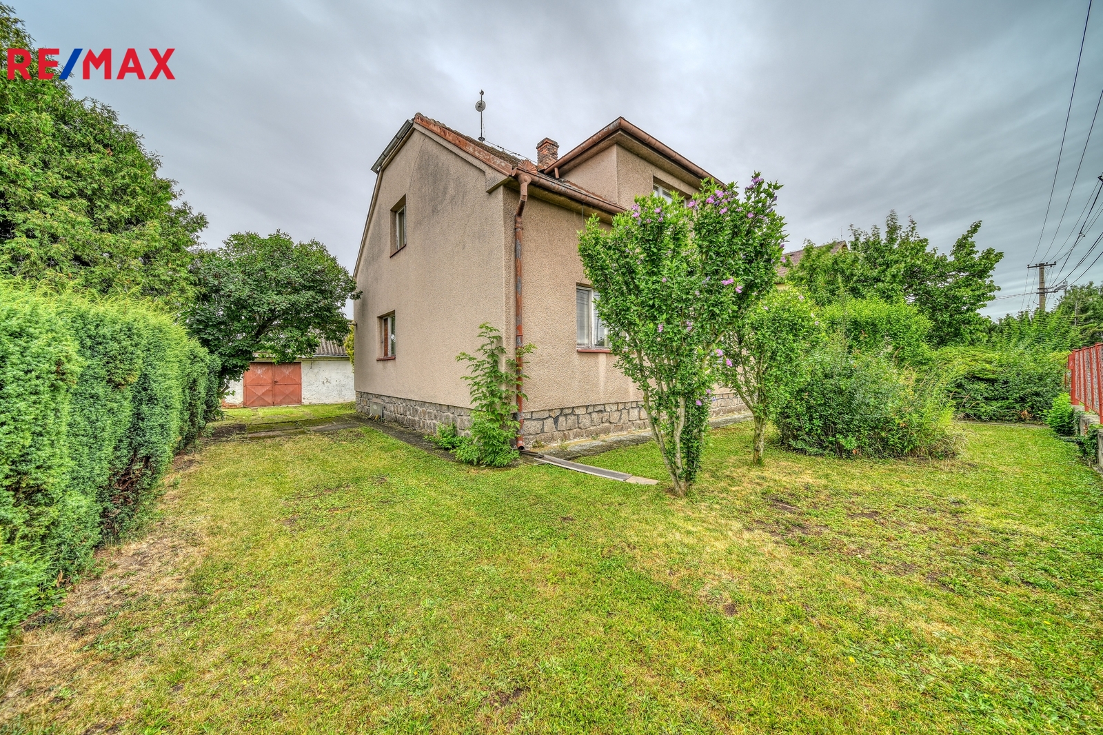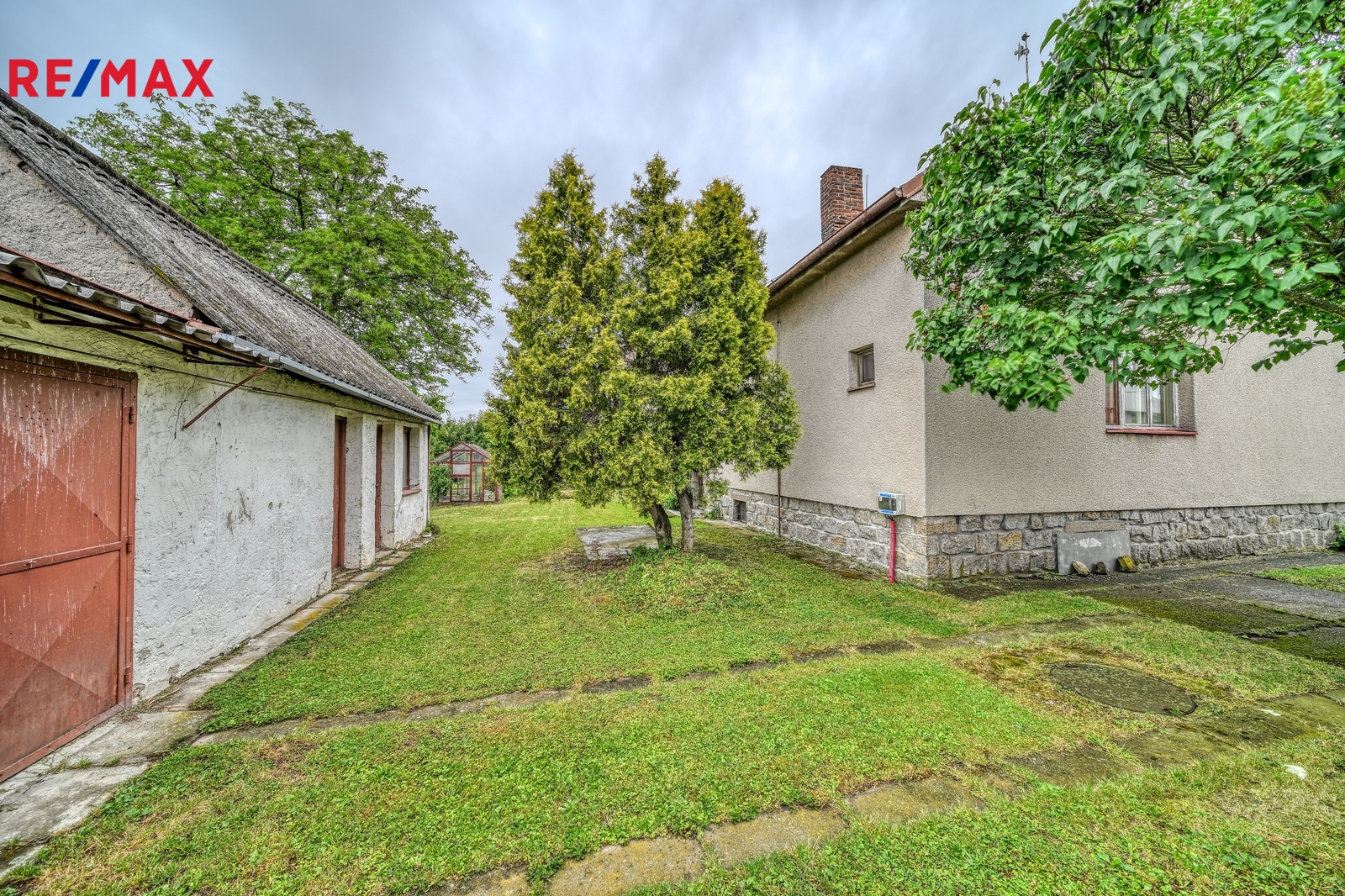 Na zahradě jsou vzrostlé stromy, garáž s dílnou a skleník. Je zde dostatek prostoru pro zahradničení, odpočinek nebo vybudování bazénu a posezení.
