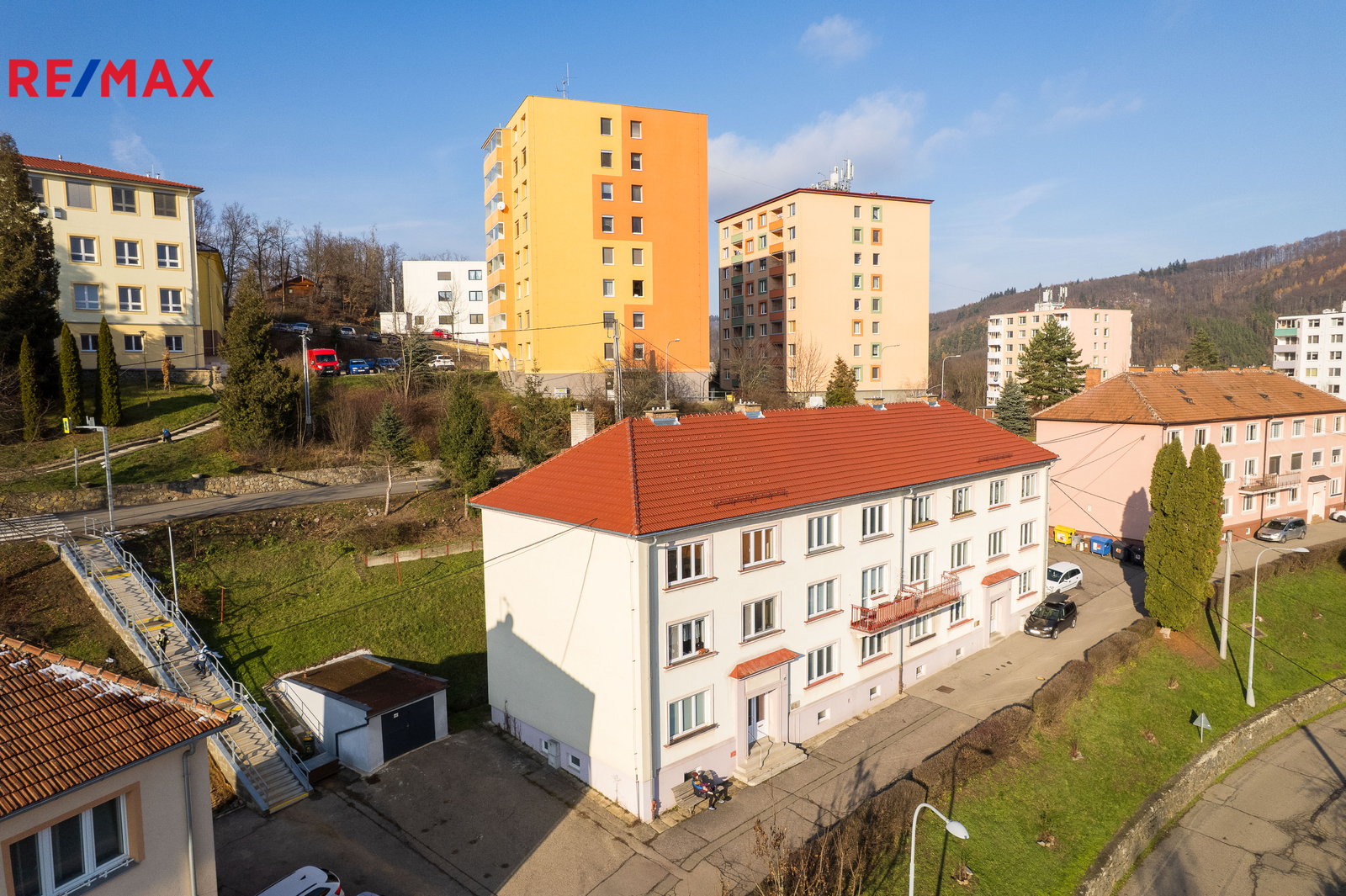 V cihlovém domě z r.1955 proběhla částečná revitalizace v r.2016. Další rekonstrukce se uskutečnily letos (střecha), následovat bude kompletní zateplení domu. SVJ tvoří celkem dvanáct bytů, v suterénu sklepy a společné prostory (sušárna). Vedle domu a před domem možnost posezení, zahradničení, nedaleko dětské hřiště a les. Z bytu je výhled na okolní přírodu, skvělá příležitost k ranním či večerním vycházkám. U domu je několik parkovacích míst, možnost pronájmu pozemku pro zahradničení.