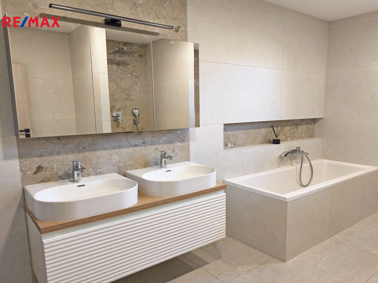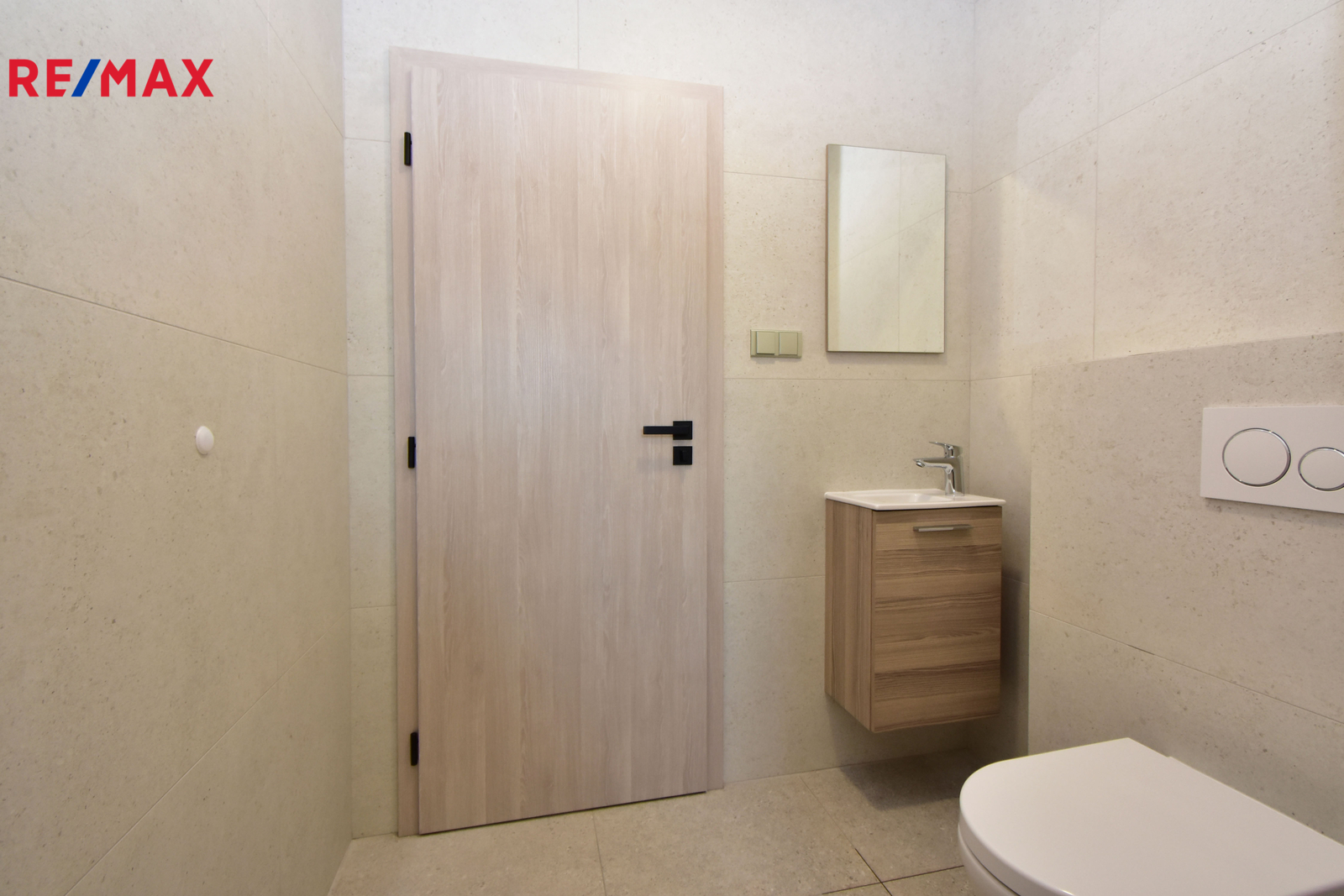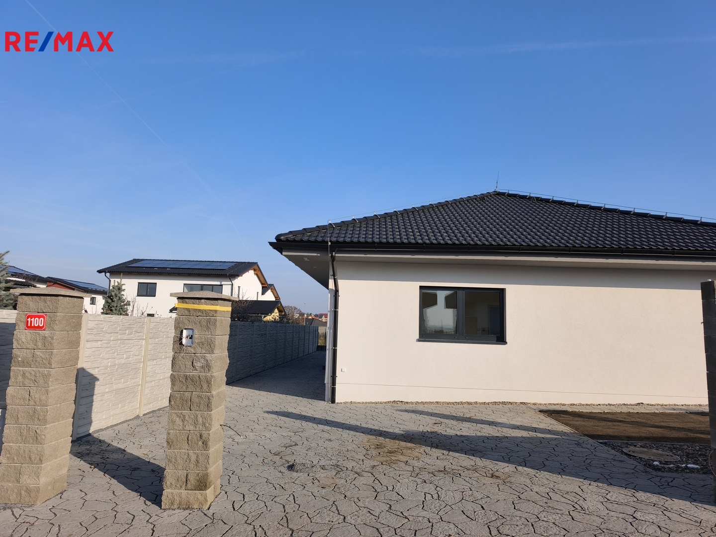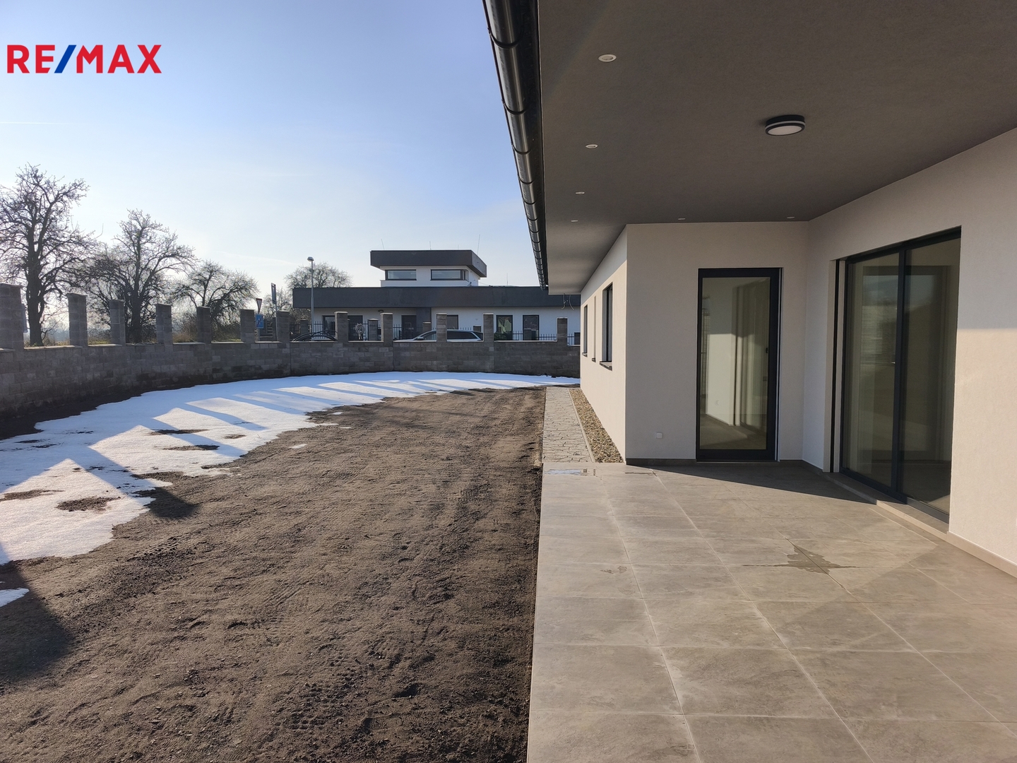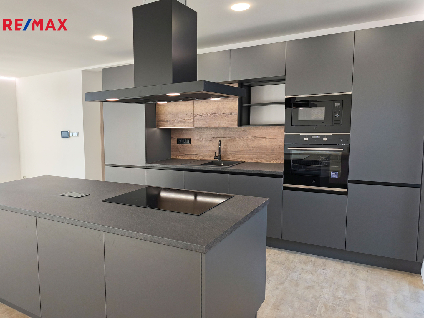 Rodinný dům Vám nabízí velmi prostornou vstupní chodbu včetně luxusní vestavěné šatní skříně a botníkem vyrobené na míru, samostatnou toaletu se vstupem do technické místnosti s tepelným čerpadlem, místem na pračku, sušičku a úklidové prostředky. Dále velmi atraktivní koupelnu se sprchovým koutem, vanou, toaletou a dvoj umyvadlem s kosmetickou skříňkou a zrcadlem. Niky v obkladu koupelny tvoří praktický i designový prvek. Tato koupelna je praktická, maximálně prosvětlená a nabízí dostatek místa pro odpočinek i úložné prostory. V domě naleznete tři samostatné neprůchozí ložnice, z toho hlavní ložnice 17 m2 má svou vlastní šatnu 6,5 m2. Dominantou nemovitosti je obývací pokoj s kuchyňským a jídelním koutem. Kuchyně je vybavena moderními vestavěnými spotřebiči zn. Electrolux včetně myčky, indukční varné desky a velkoobjemové lednice s mrazákem. Obývací pokoj s jídelním a kuchyňským koutem tvoří jeden otevřený prostor, kde jednotlivé zóny plynule navazují a celek působí maximálně prostorně, nadčasově a vzdušně. Celý interiér je laděn v moderních tónech, které podporují pocit tepla. Prostor je ideální pro rodinný život i každodenní relaxaci, s důrazem na funkčnost, estetiku i propojení s exteriérem. Z obývacího pokoje naleznete vstup na terasu a zahradu. V oknech a balkónových dveří do zahrady jsou instalovány venkovní žaluzie, které zajišťují soukromí. Součástí pronájmu je kompletní osvětlení a sedací souprava. Nemovitost je řešena s důrazem na světlost, prostor a eleganci. Rodinný dům je bez předchozího užívání, čeká na prvního nájemce a již se ladí dokončovací práce (podlahové lišty, zahradní domek, plot, vjezdová brána, terénní úpravy atd.).
