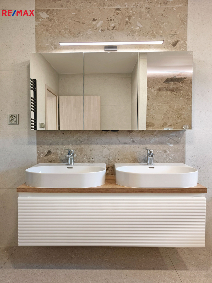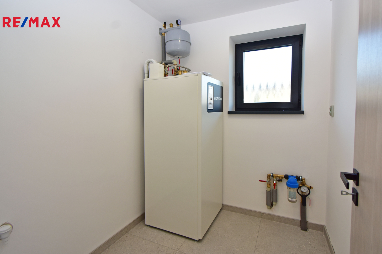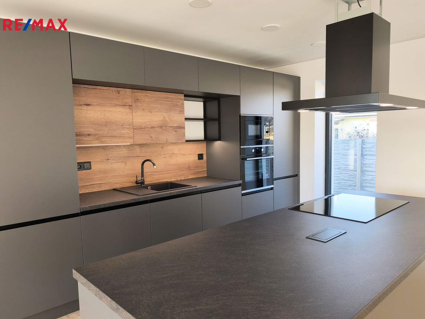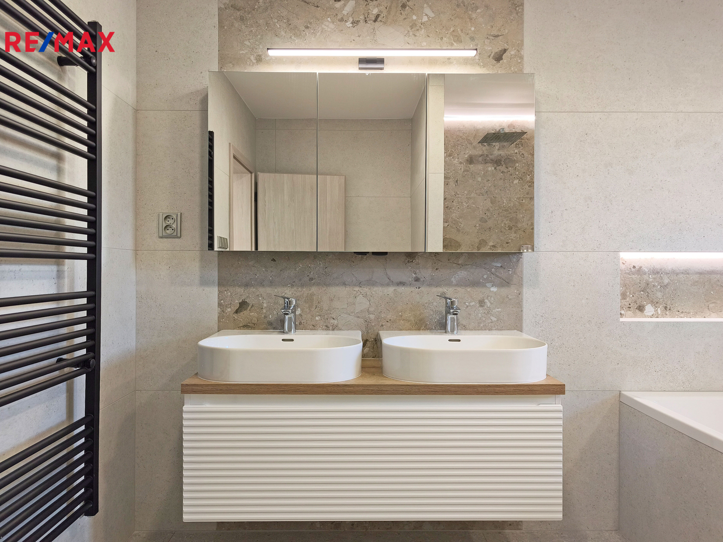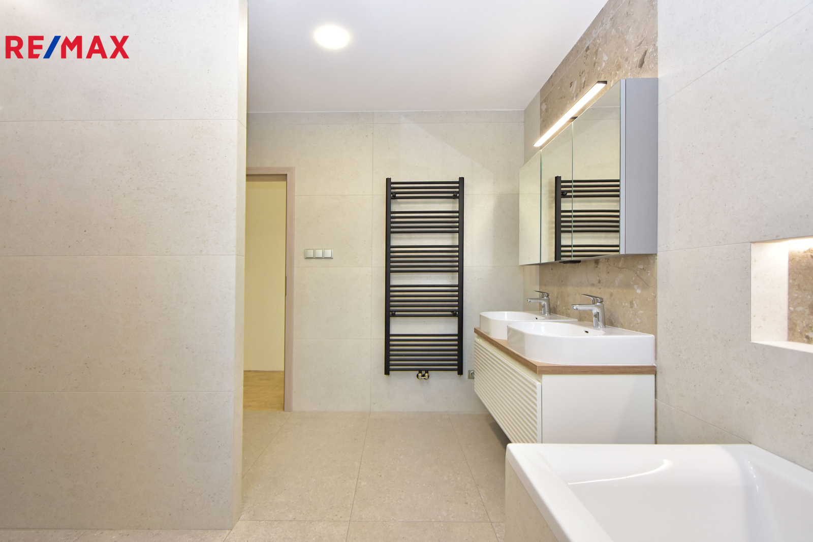 Rodinný dům Vám nabízí velmi prostornou vstupní chodbu včetně luxusní vestavěné šatní skříně a botníkem vyrobené na míru, samostatnou toaletu se vstupem do technické místnosti s tepelným čerpadlem, místem na pračku, sušičku a úklidové prostředky. Dále velmi atraktivní koupelnu se sprchovým koutem, vanou, toaletou a dvoj umyvadlem s kosmetickou skříňkou a zrcadlem. Niky v obkladu koupelny tvoří praktický i designový prvek. Tato koupelna je praktická, maximálně prosvětlená a nabízí dostatek místa pro odpočinek i úložné prostory. V domě naleznete tři samostatné neprůchozí ložnice, z toho hlavní ložnice 17 m2 má svou vlastní šatnu 6,5 m2. Dominantou nemovitosti je obývací pokoj s kuchyňským a jídelním koutem. Kuchyně je vybavena moderními vestavěnými spotřebiči zn. Electrolux včetně myčky, indukční varné desky a velkoobjemové lednice s mrazákem. Obývací pokoj s jídelním a kuchyňským koutem tvoří jeden otevřený prostor, kde jednotlivé zóny plynule navazují a celek působí maximálně prostorně, nadčasově a vzdušně. Celý interiér je laděn v moderních tónech, které podporují pocit tepla. Prostor je ideální pro rodinný život i každodenní relaxaci, s důrazem na funkčnost, estetiku i propojení s exteriérem. Z obývacího pokoje naleznete vstup na terasu a zahradu. V oknech a balkónových dveří do zahrady jsou instalovány venkovní žaluzie, které zajišťují soukromí. Součástí pronájmu je kompletní osvětlení a sedací souprava. Nemovitost je řešena s důrazem na světlost, prostor a eleganci. Rodinný dům je bez předchozího užívání, čeká na prvního nájemce a již se ladí dokončovací práce (podlahové lišty, zahradní domek, plot, vjezdová brána, terénní úpravy atd.).