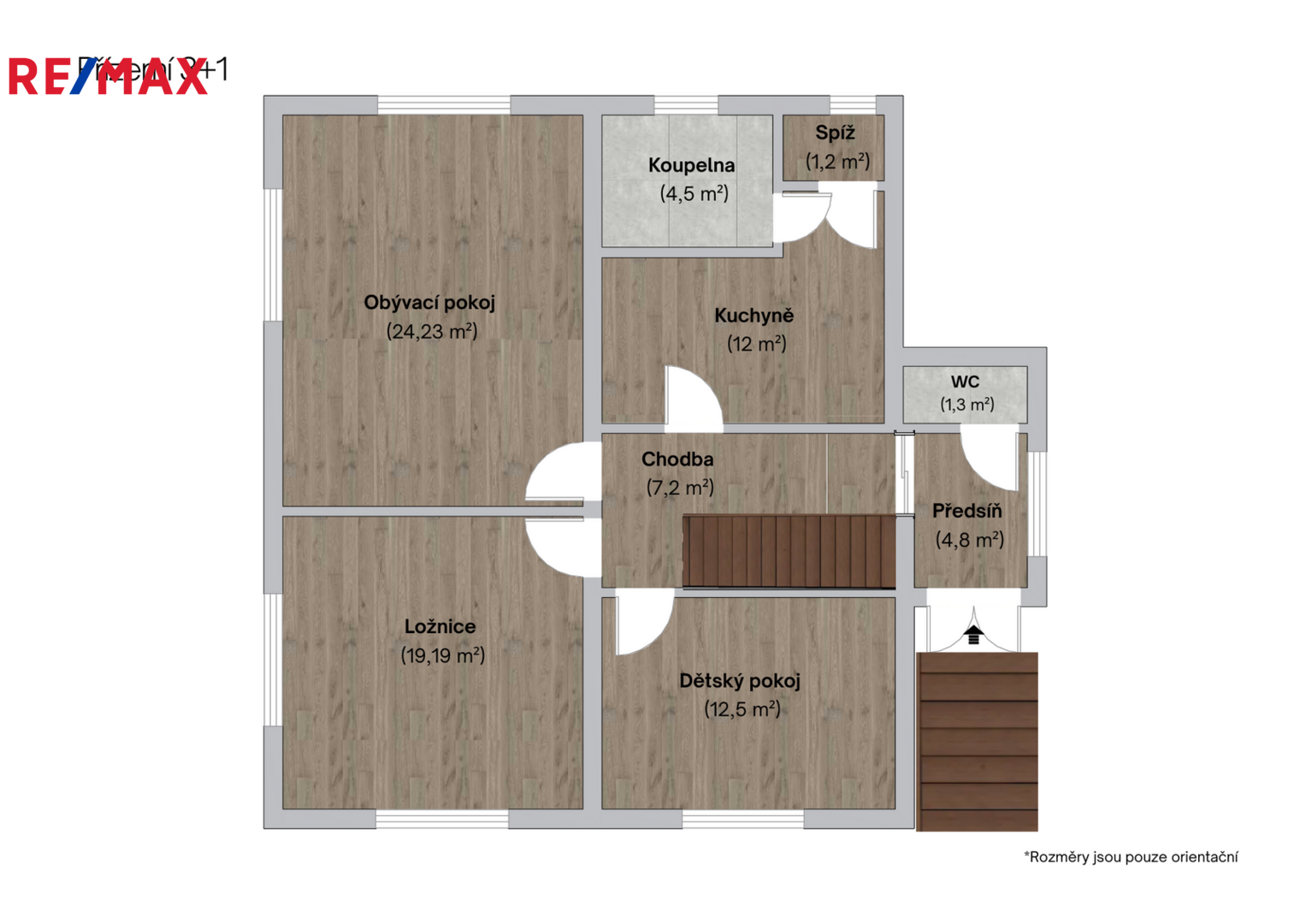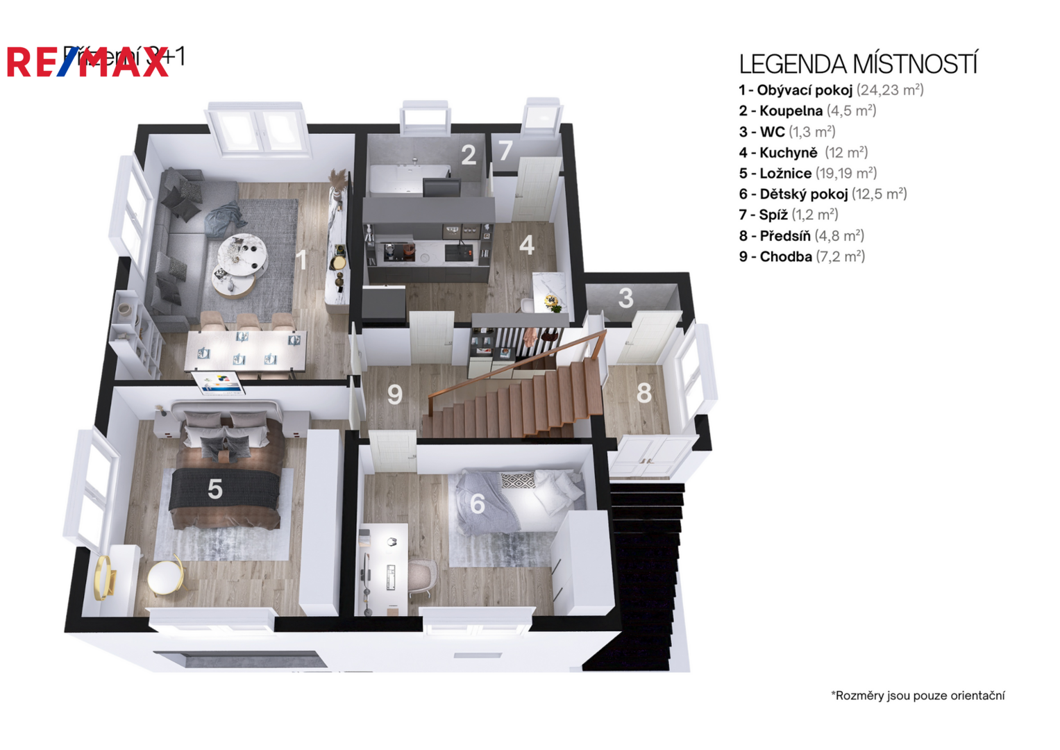 - možnost rozdělení na dvě samostatné bytové jednotky – ideální pro dvougenerační bydlení nebo investici