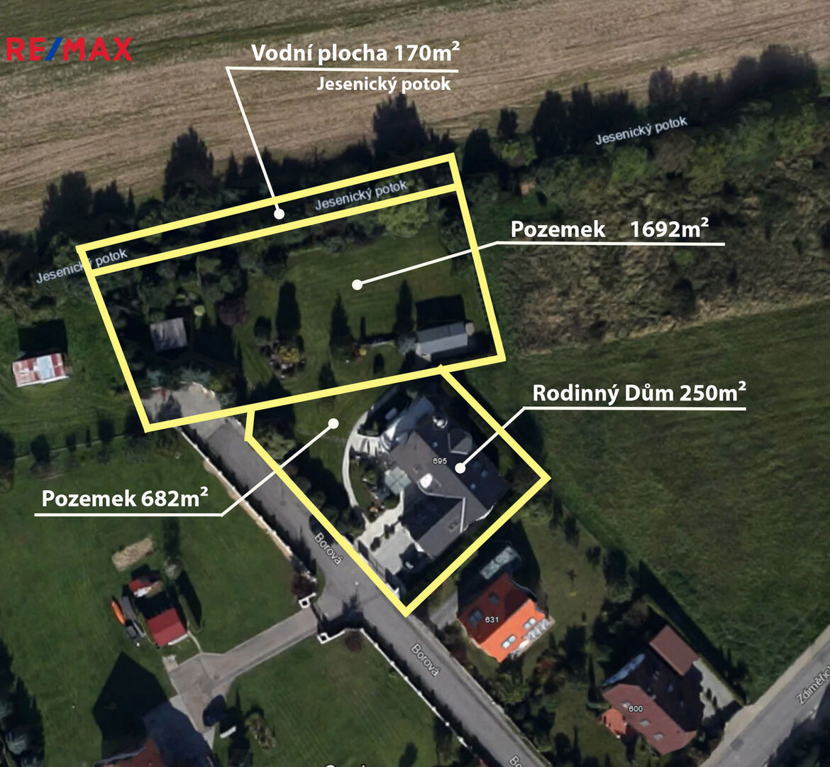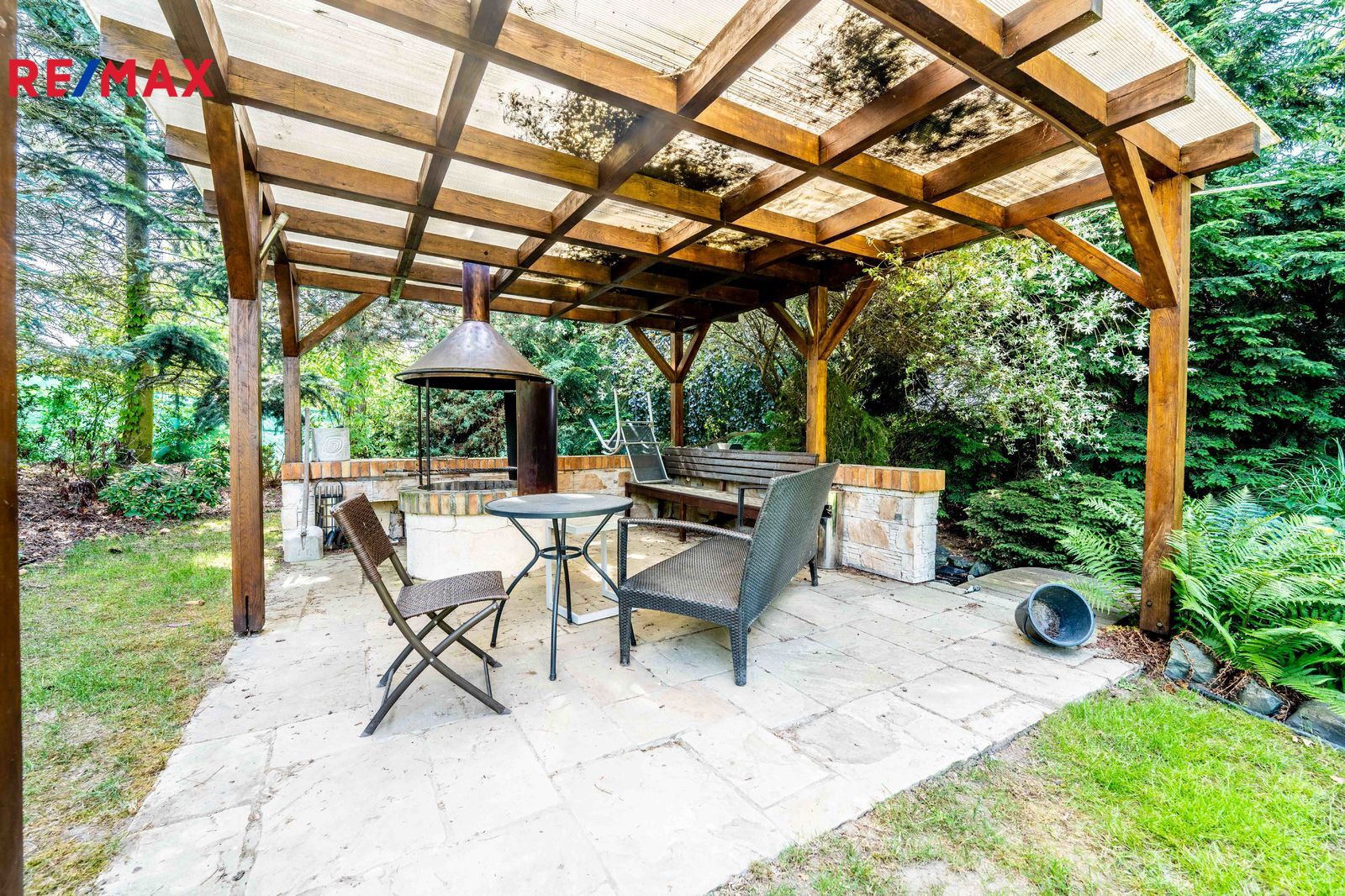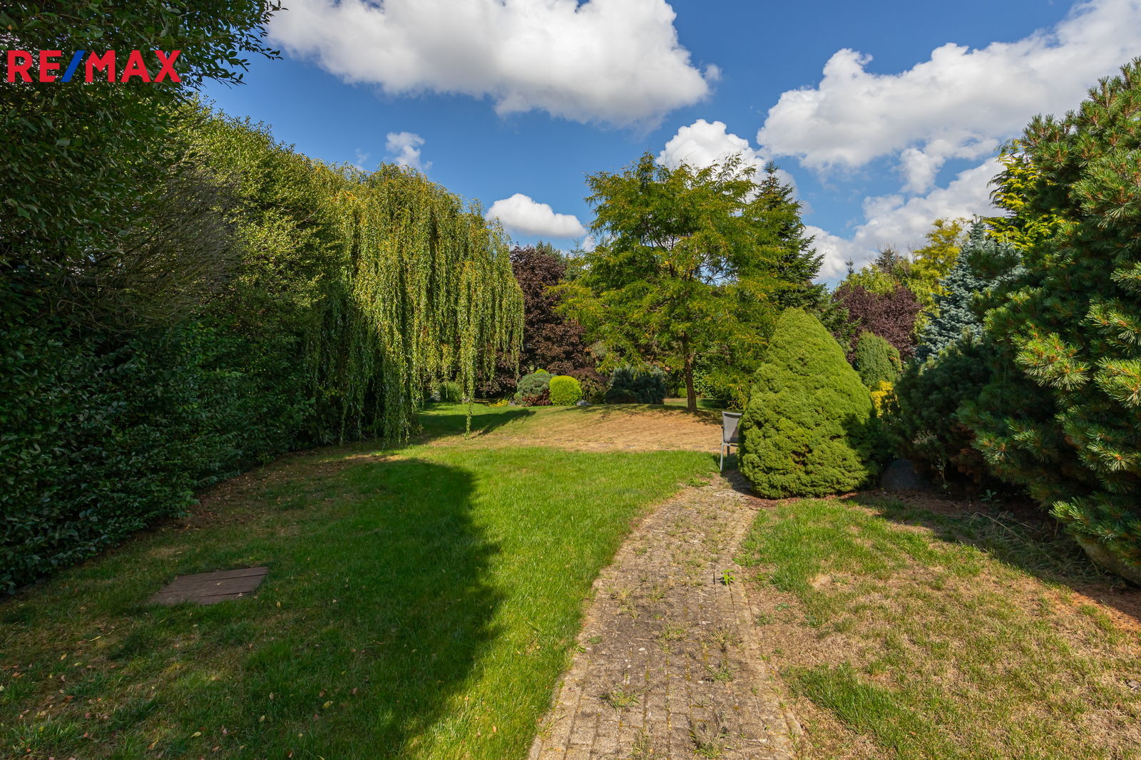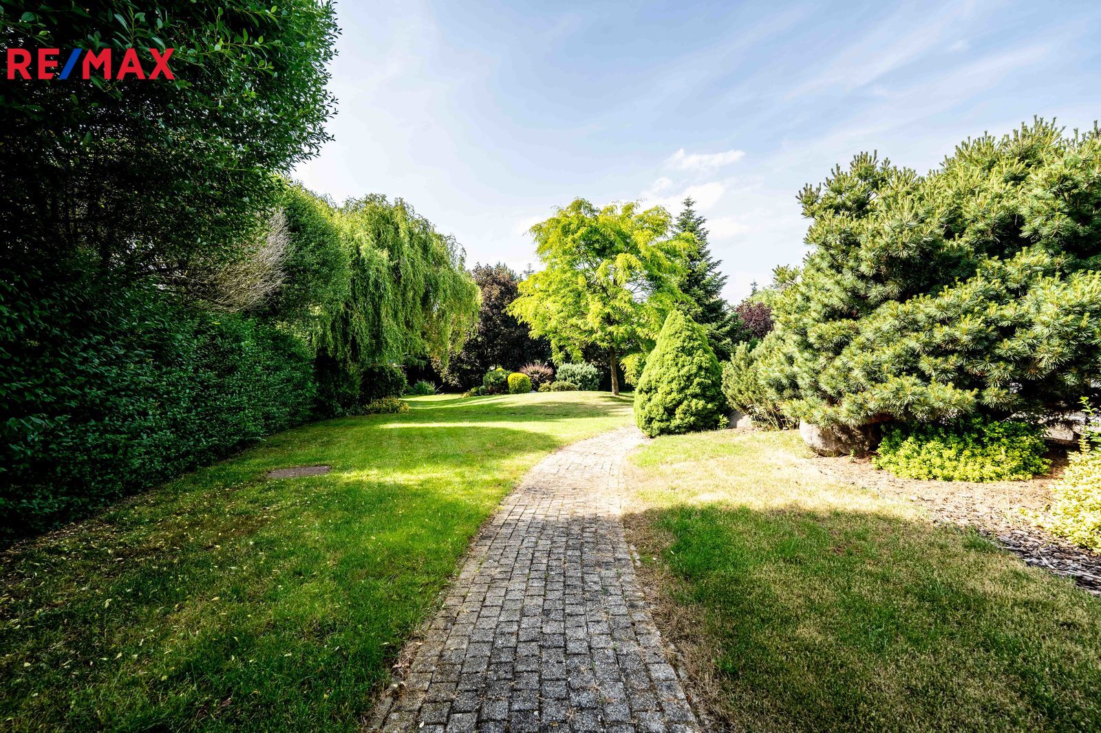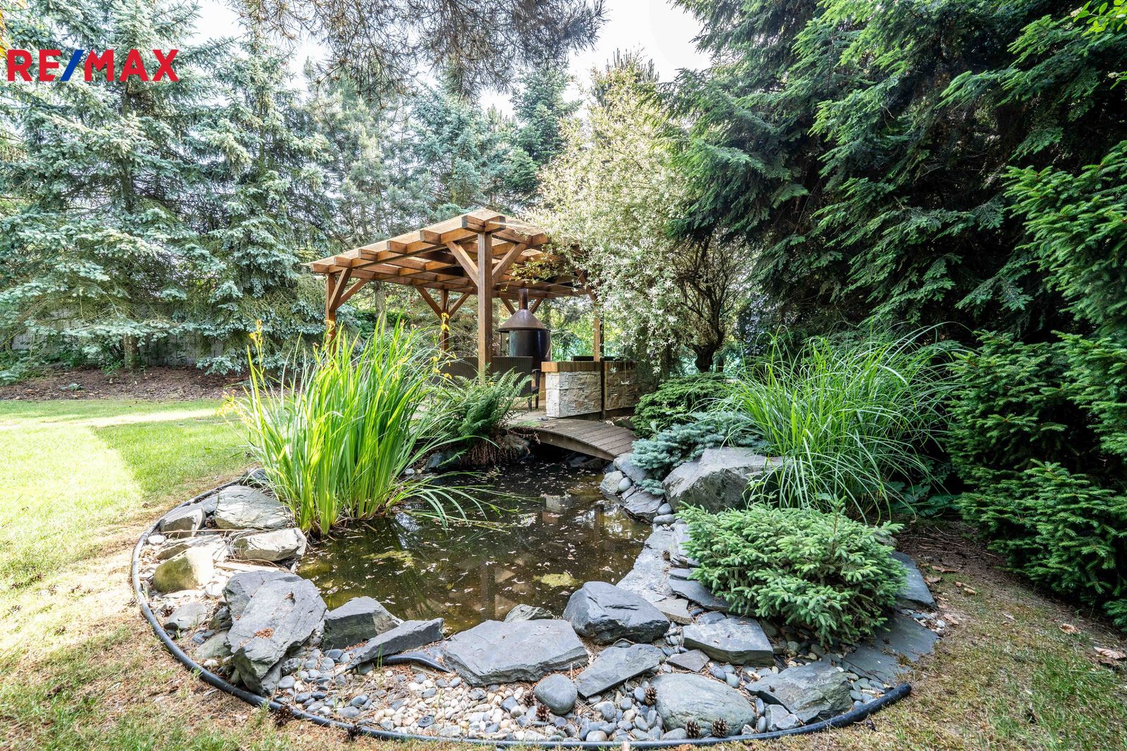 K domu náleží zahrada o celkové velikosti 2762 m2. Dolní část pozemku lemuje Jesenický potůček. Na pozemku pokrytém udržovanou trávou se nachází altán, veranda s grilem, jezírko s fontánou a zahradní domek 15 m2. Automatický centrální zavlažovací systém pozemku.