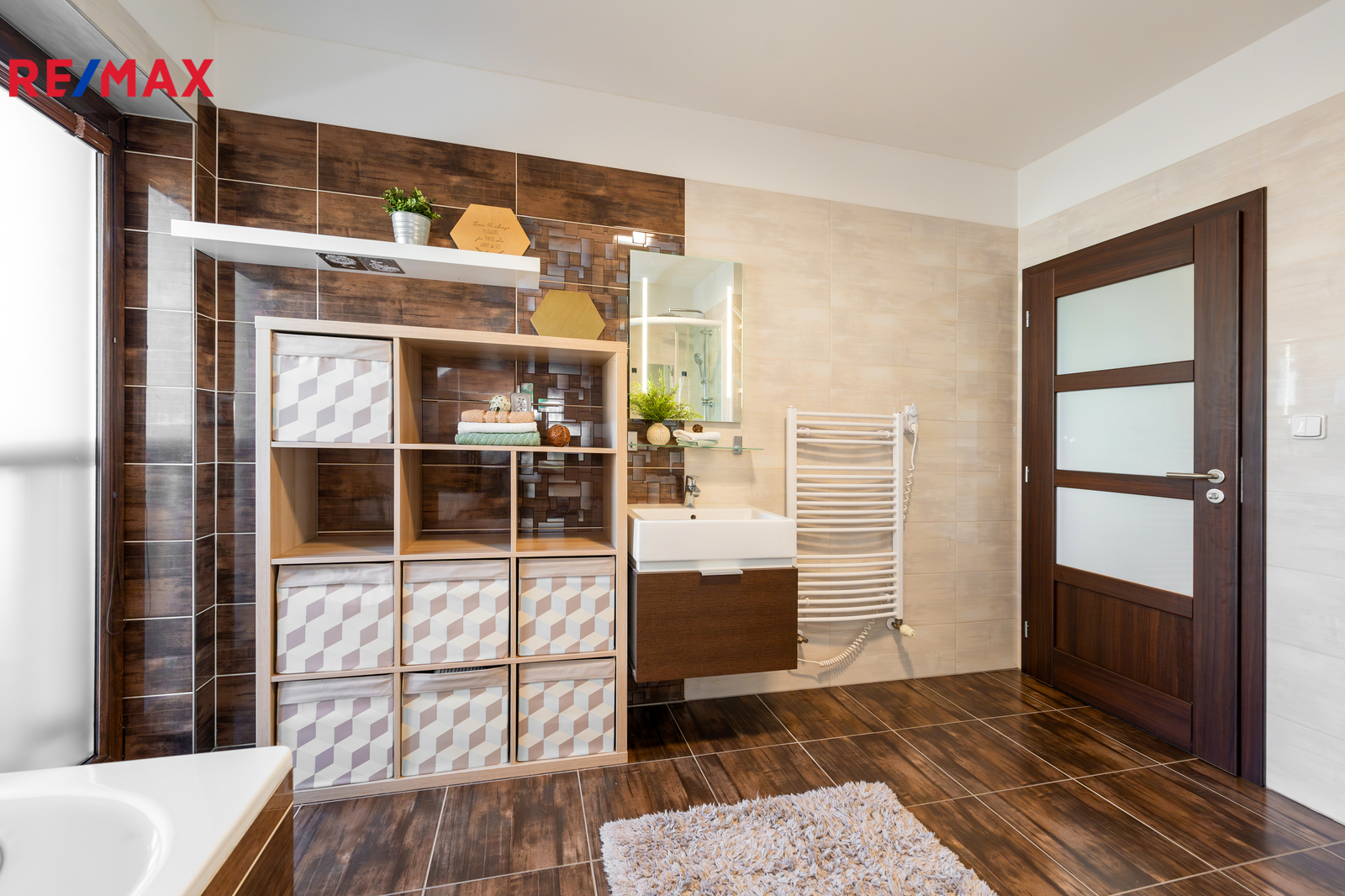 -v každém patře plnohodnotná koupelna, dole sprchový kout, nahoře sprchový kout i vana.