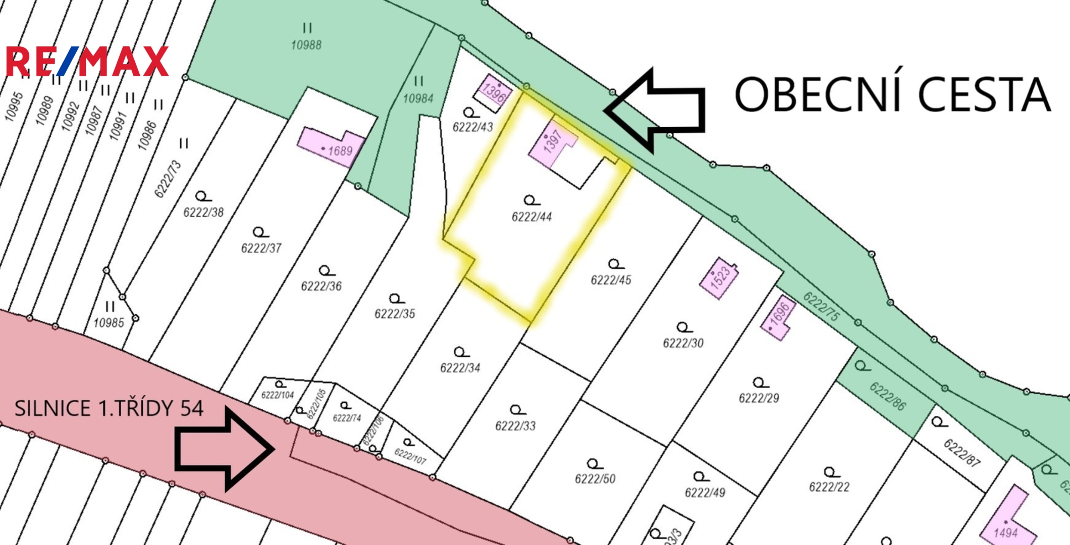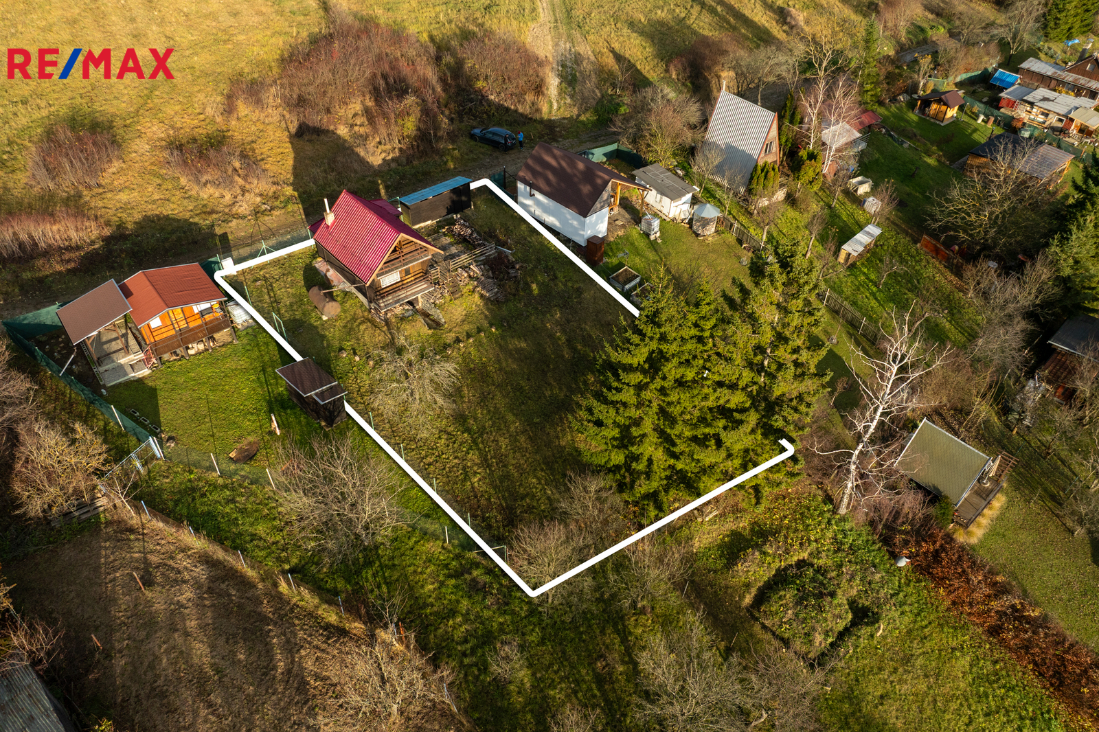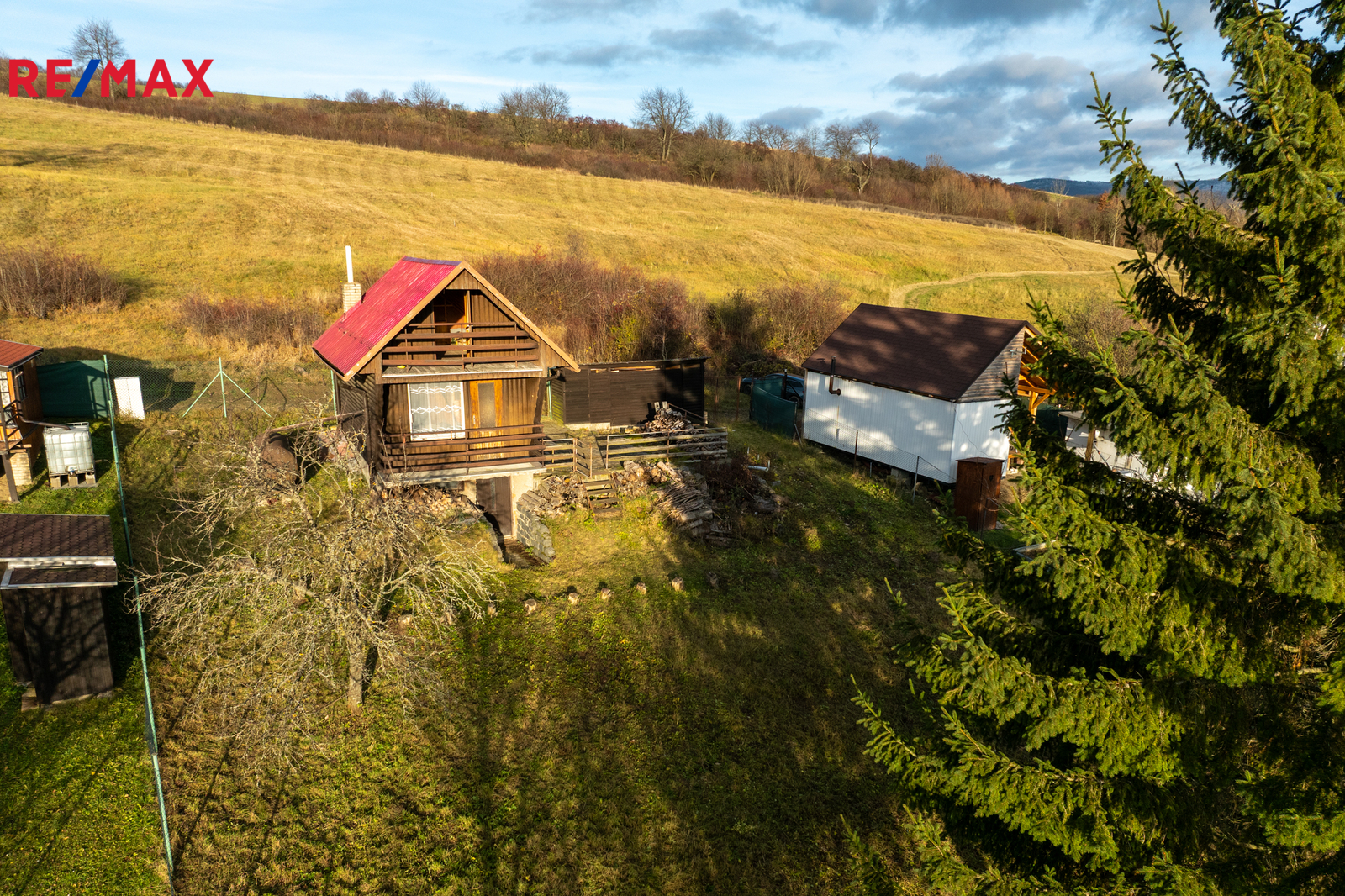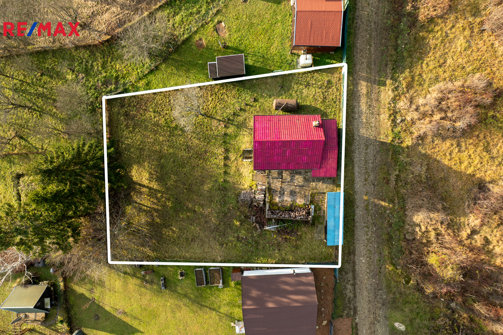 Celková plocha pozemku včetně zastavěné je 599m². Příjezd k chatě je zajištěn po obecní cestě.