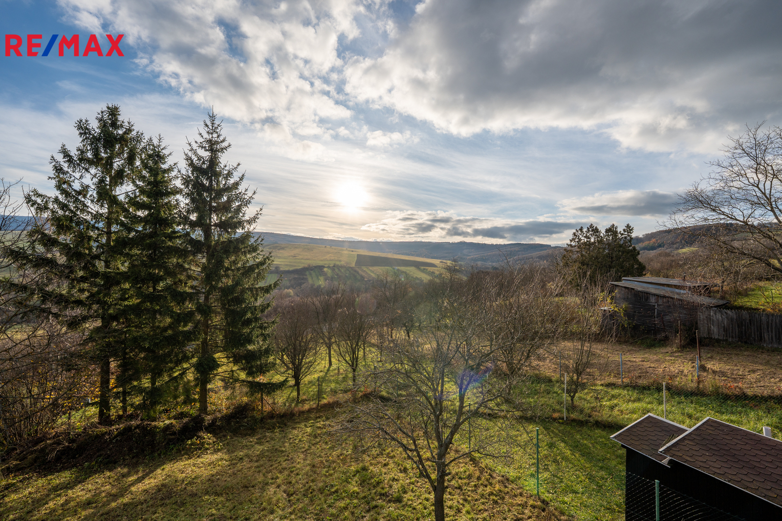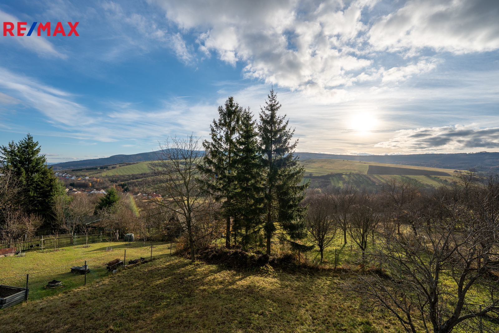 Na zahradě se nachází strom ořechu a trnky.