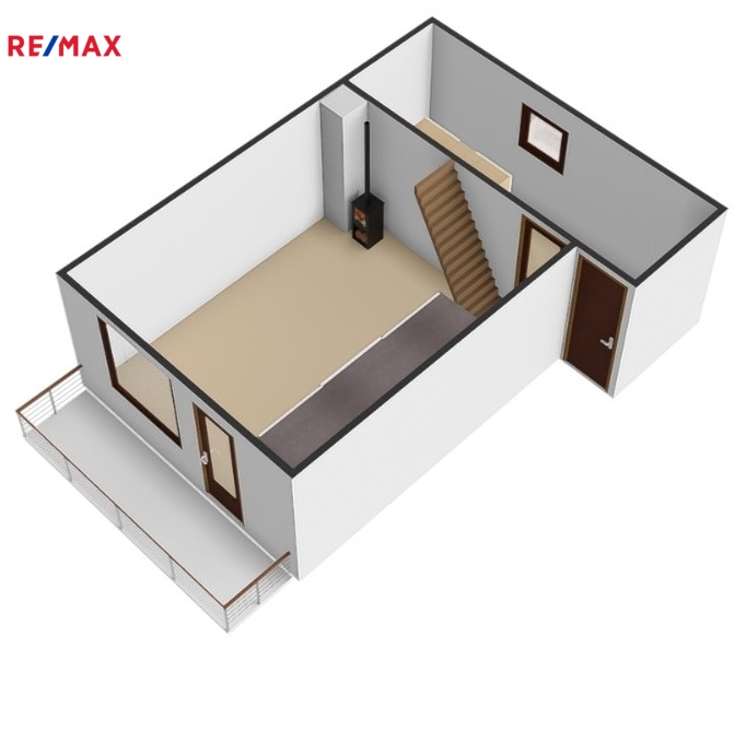 Z prostoru kuchyňky lze vejít do obytné místnosti kterou vede komín a jsou zde kamna na tuhá paliva, která vytápí objekt. Z této místnosti můžete vyjít dveřmi na balkon, který naskytne krásné výhledy do okolí, na přírodu a na obec Strání. Orientace je J-JZ.