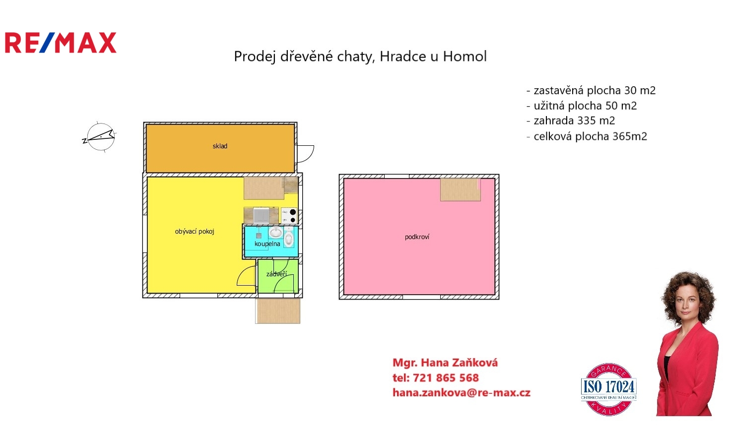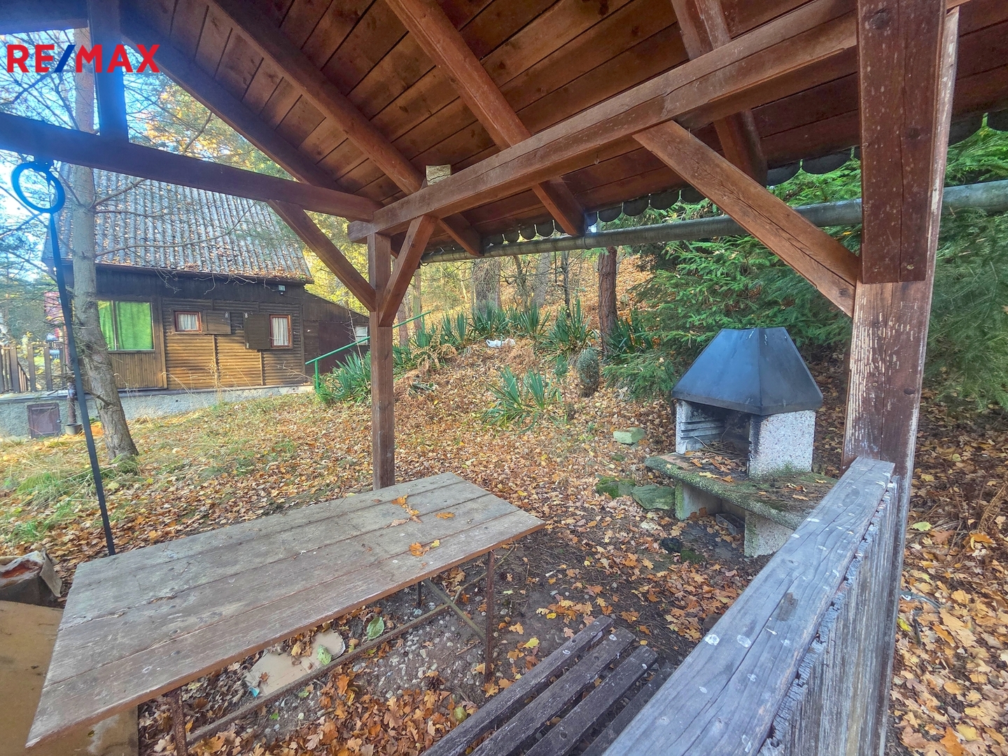 K chatě náleží zahrada o velikosti 335 m2, další část zahrady s altánem a venkovním krbem je možné pronajmout.