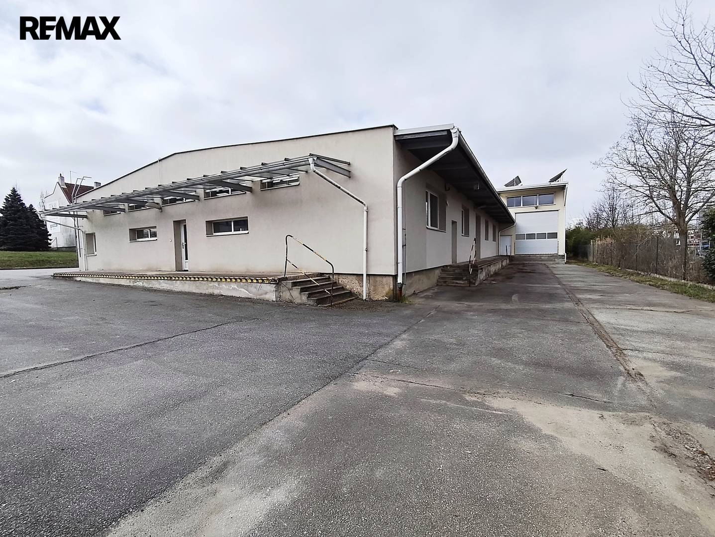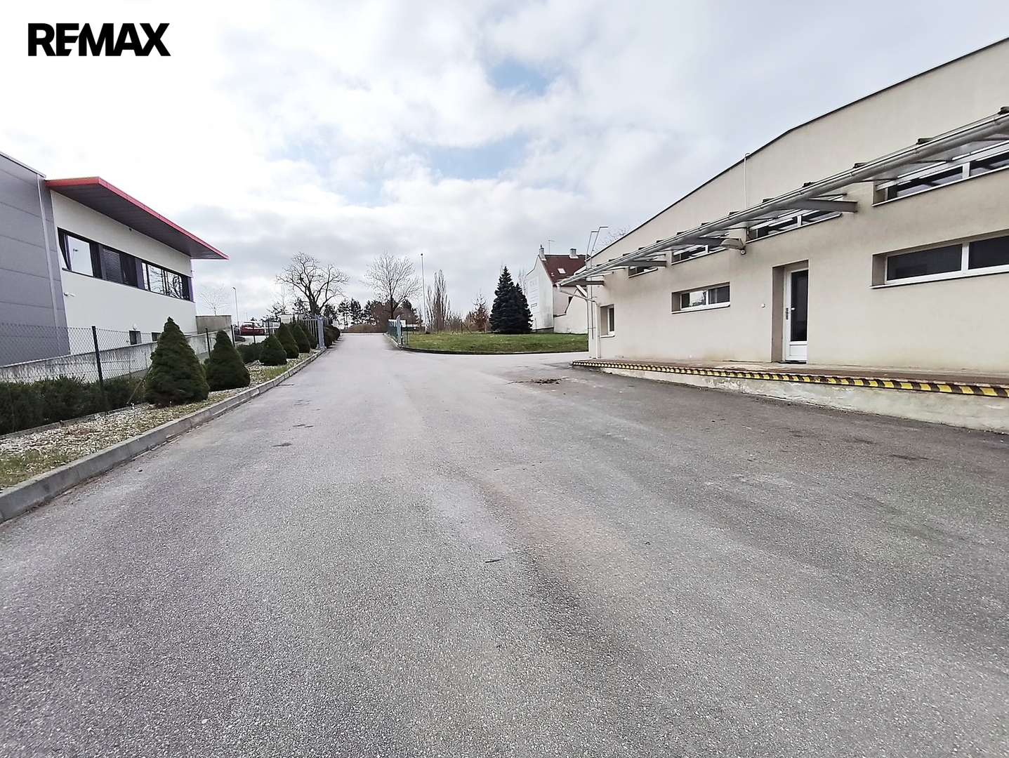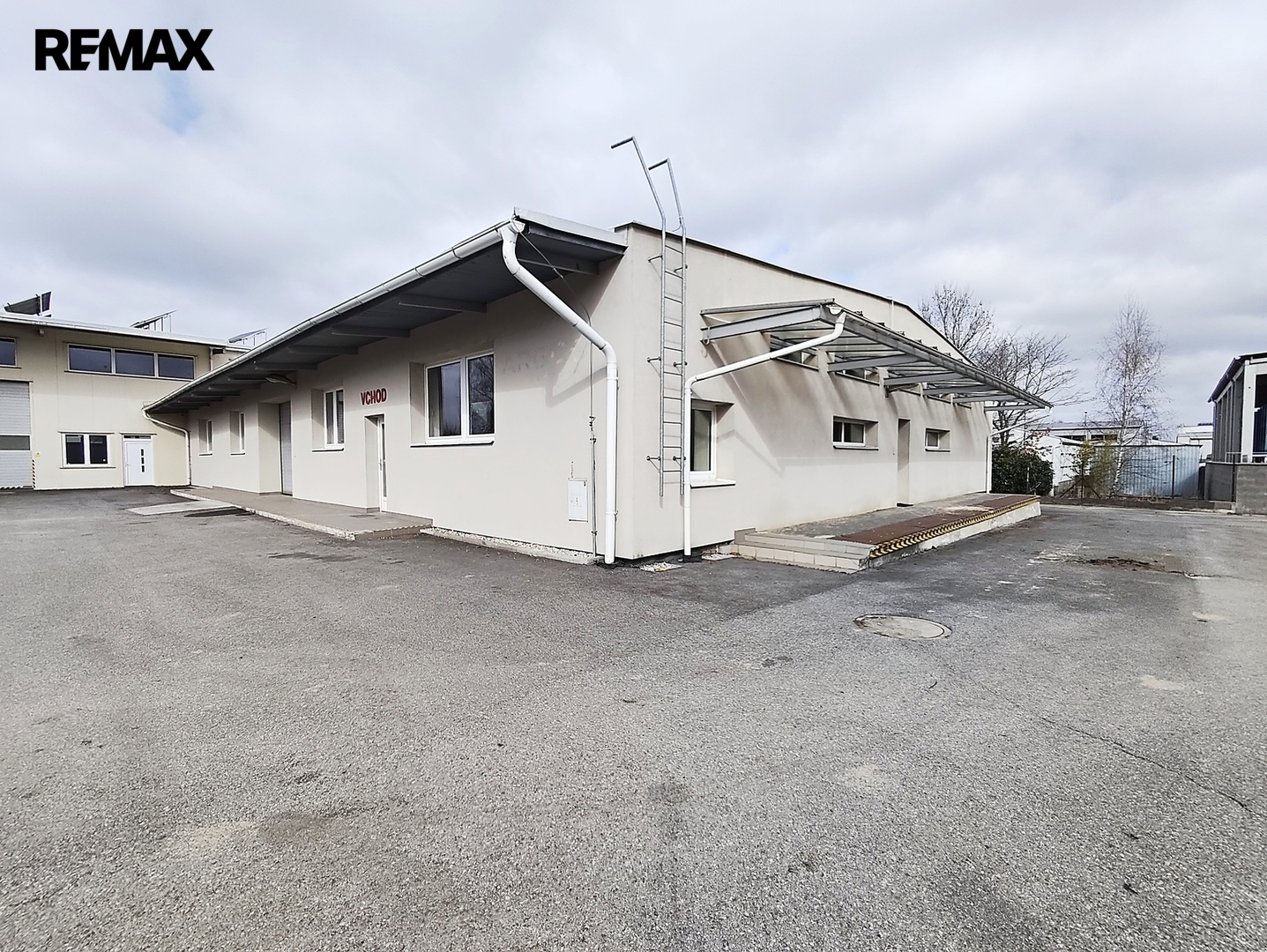 Zděná hala o výměře cca 520m2 je tvořena velkým prostorem, výrobním či prodejním, se středovými příčkami. Zvlášť je oddělena kancelář, sociální zařízení, úklidová místnost a kuchyňka. Vstup do haly je řešen z úrovně terénu - vjezd pro zásobování (rolovací průmyslová vrata) + vstupní dveře a dále z rampy – také rolovací průmyslová vrata a vstupní dveře. Další vstup je z čela budovy dveřmi do kanceláře a další sklopná vrata spojují tuto budovu s vedlejší ocelovou halou. Podlahová krytina je betonová stěrka s nátěrem. Okna a dveře v plastu. Vytápění elektrické.