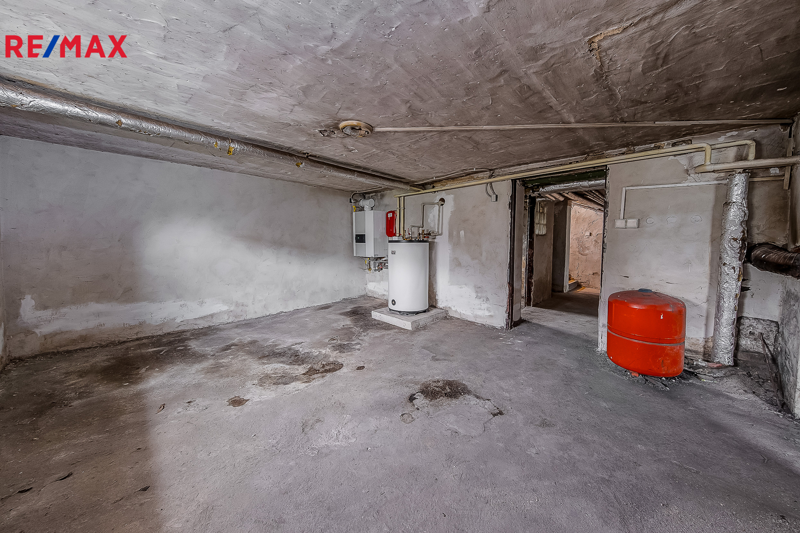 Dům má tři podlaží plus prostornou půdu. Sklepní podlaží o výměře 75 m² slouží jako technické a skladové zázemí – kotelna, sklad paliva a několik dalších místností využitelných jako dílna, hobby prostor nebo úložný prostor.