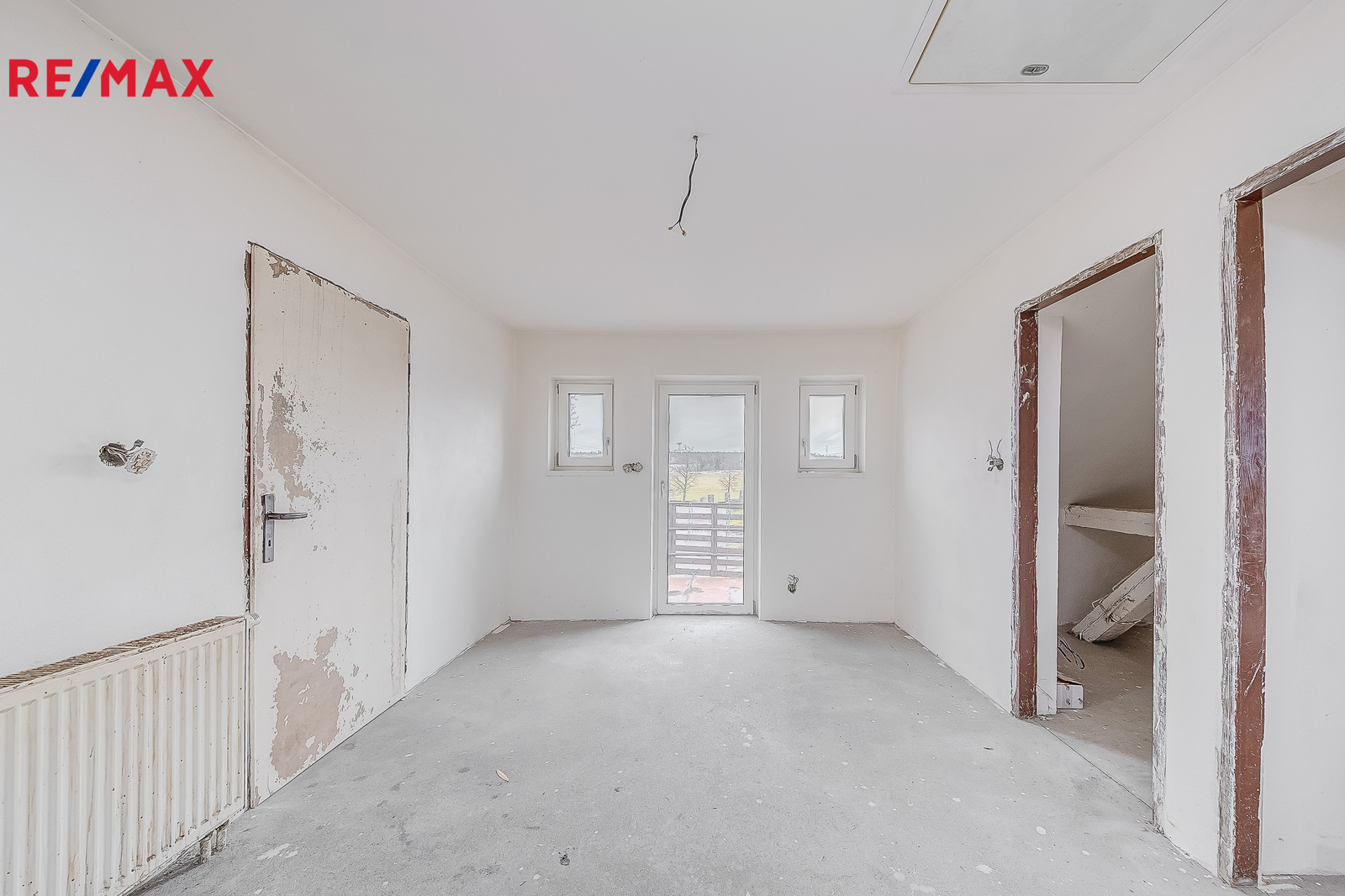 Druhé nadzemní podlaží má přibližně 85 m² a kombinuje již využívané pokoje s prostory před dokončením. Patro je připravené jako další obytná část – hotové rozvody, omítky a příprava na sanitu či kuchyň, chybí pouze finální povrchy dle vkusu nového majitele. Výrazným bonusem je terasa o velikosti 15 m², která rozšiřuje obytný prostor směrem ven a nabízí příjemné místo na posezení. Patro je ideální pro druhou bytovou jednotku, zónu pro děti nebo kombinaci bydlení a home office.