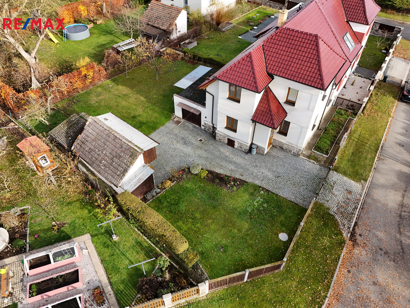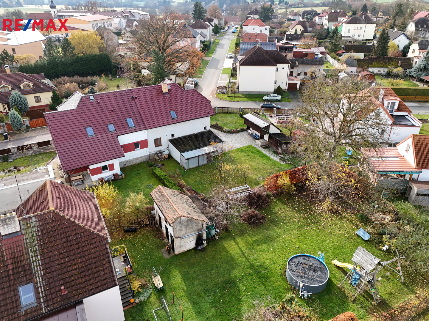 Na pozemku dále najdete prostornou garáž, zděný zahradní domek vhodný na nářadí i zahradní techniku a studnu společnou se sousedy ( může sloužit jako alternativní zdroj vody ).
