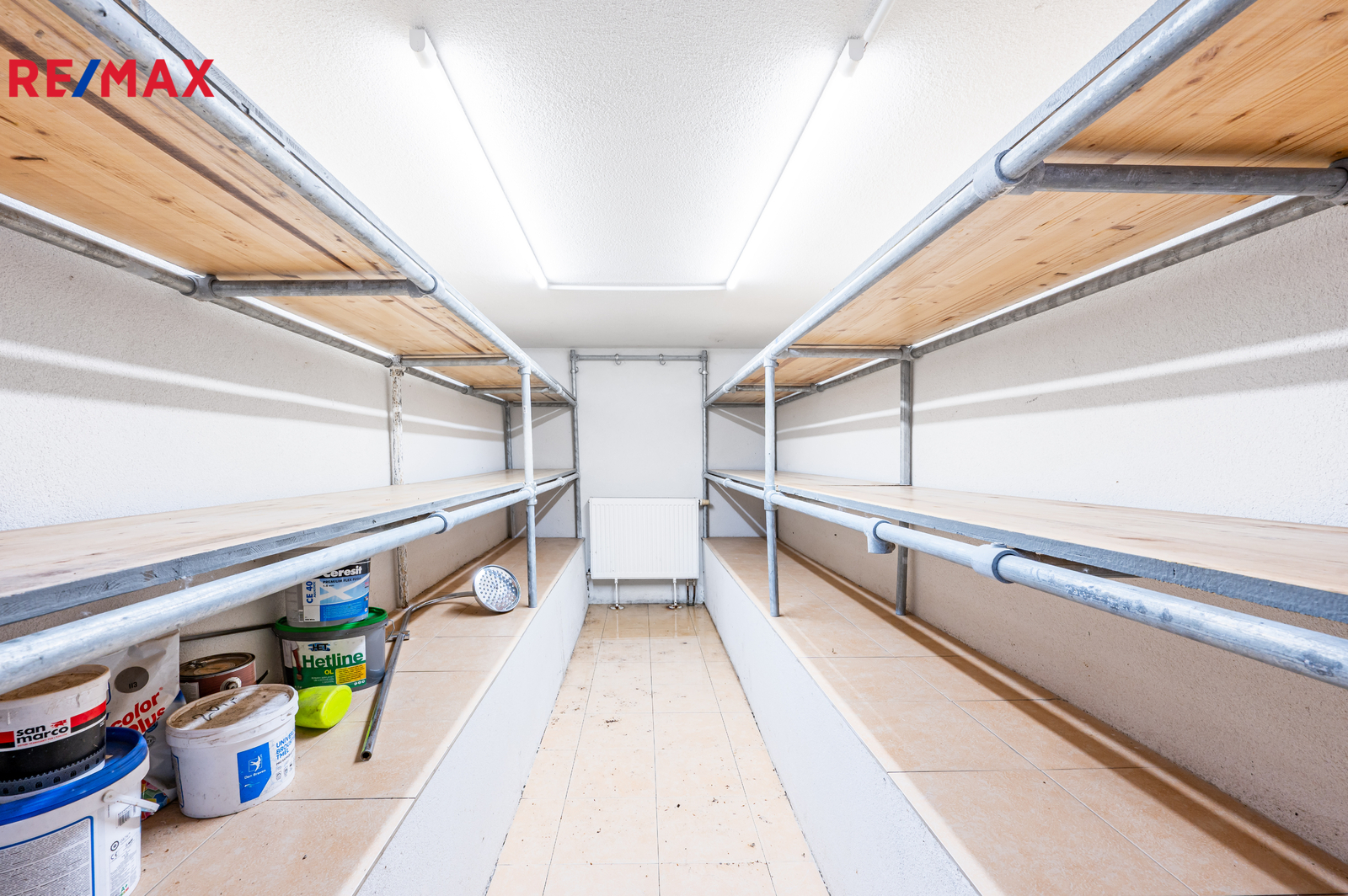 K domu náleží příjemný dvorek částečně zastřešený pergolou. Součástí je také prostorný, podzemní sklep s radiátorem proti zámrazu – ideální pro skladování nebo další využití.