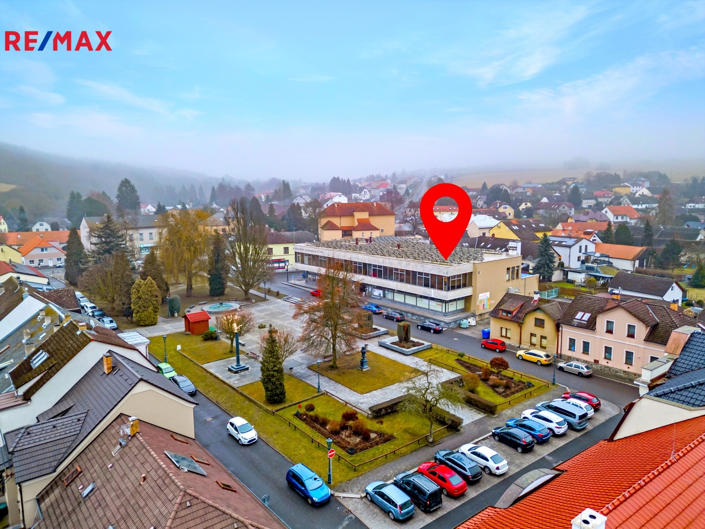 Prostor byl doposud využíván jako prodejna smíšeného zboží, je však vhodný i pro široké spektrum dalších maloobchodních či komerčních aktivit, například specializovanou prodejnu, showroom nebo služby. K dispozici je nakládací rampa, samostatné WC, sprchový kout a jedna samostatná kancelář vhodná pro administrativu či vedení provozu. Samozřejmostí je výborná viditelnost přímo z náměstí, snadná dostupnost pro zákazníky a bezbariérový přístup.