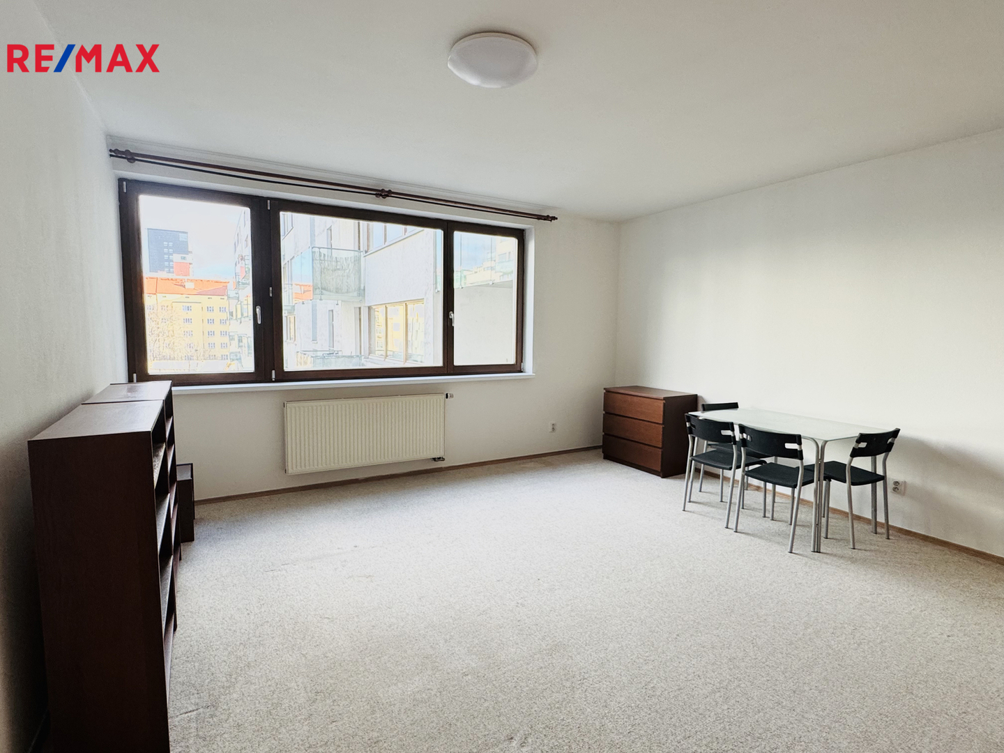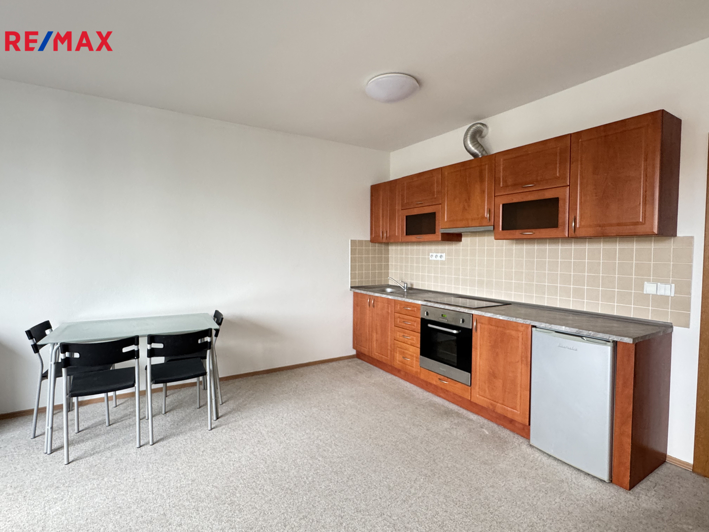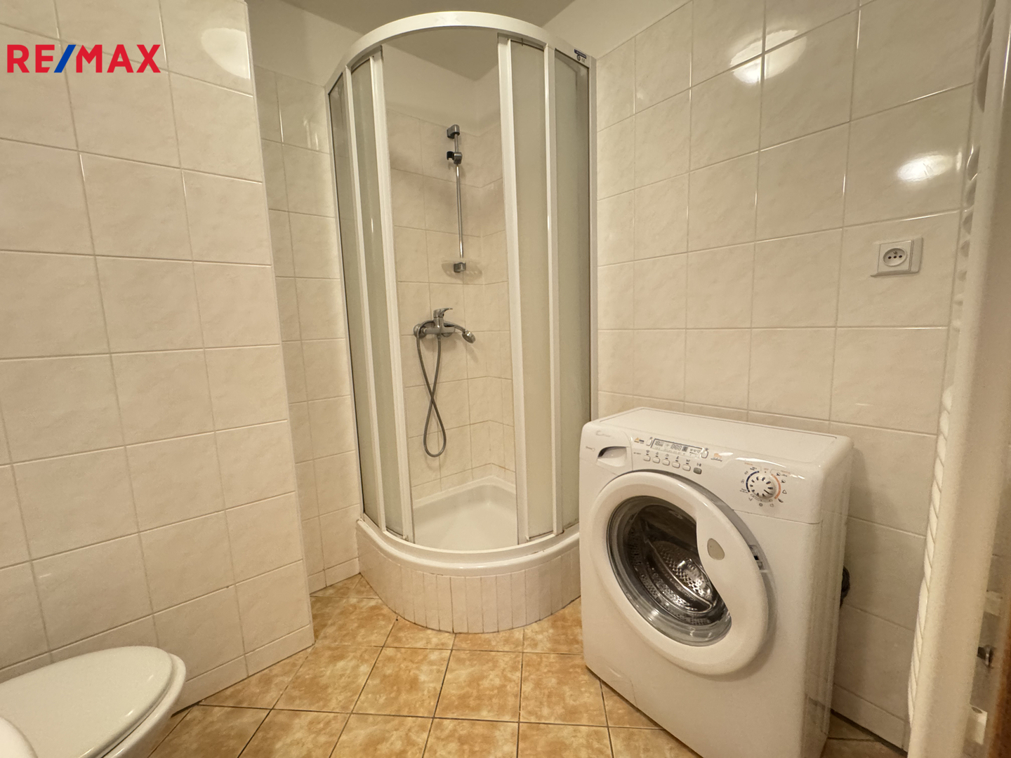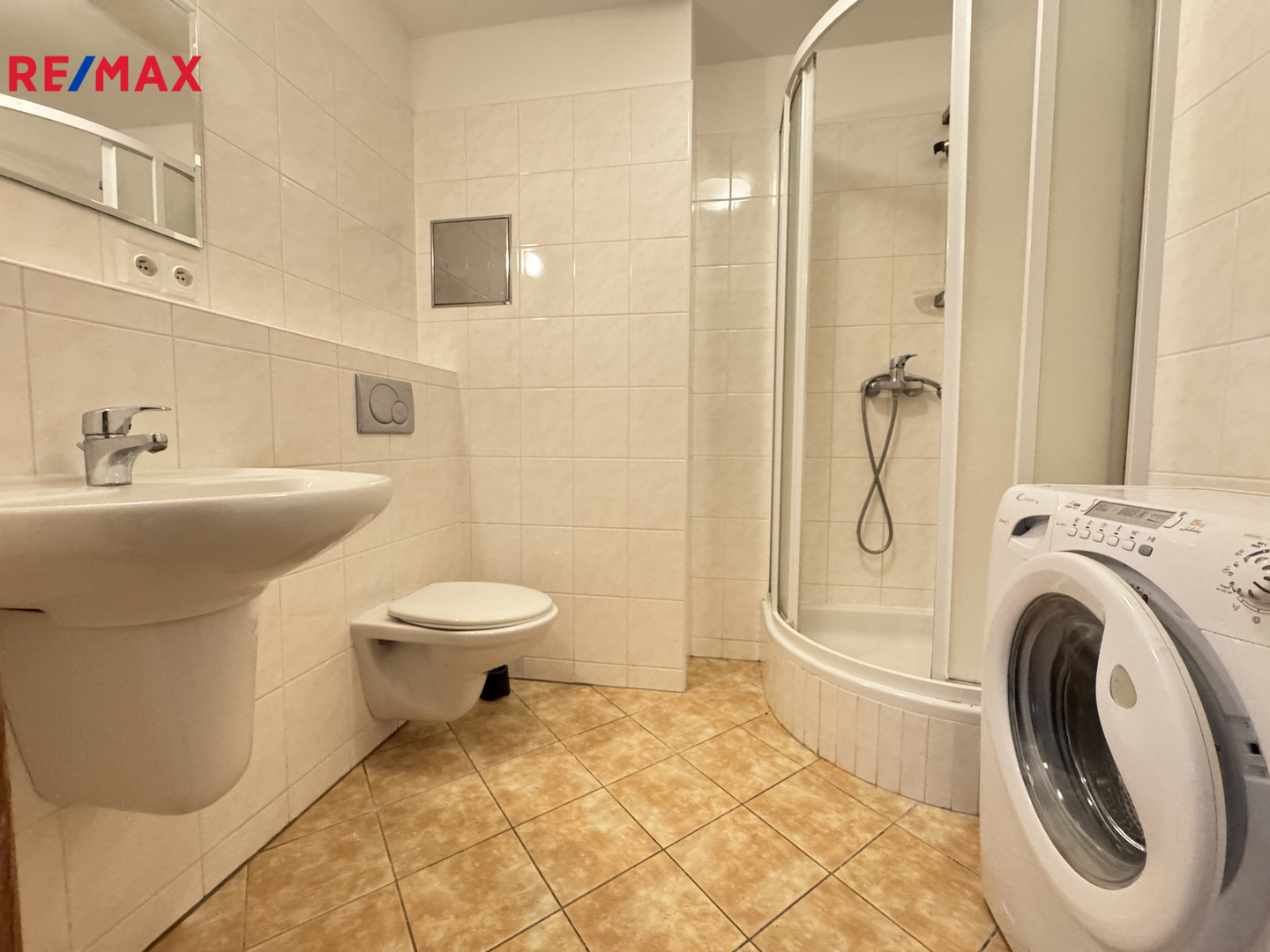 Dispozice nabízí komfortní obytný prostor s kuchyňským koutem, koupelnu se sprchovým koutem a toaletou s výhledem do klidného vnitrobloku.